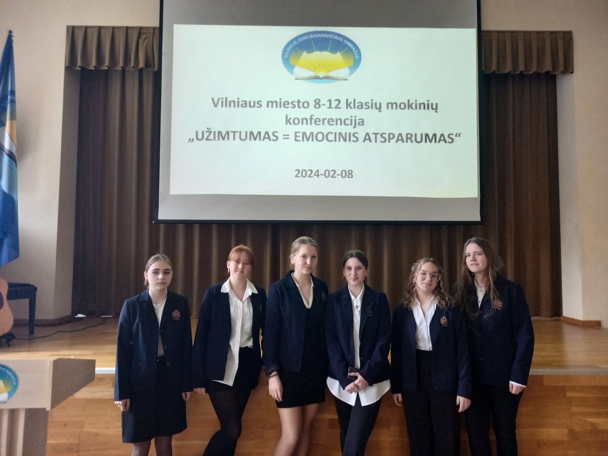 2024 vasario 8 d. vyko Vilniaus pedagoginės psichologinės tarnybos, Vilniaus miesto socialinių pedagogų metodinio būrelio ir Vilniaus Jono Basanavičiaus gimnazijos organizuota Vilniaus miesto 8-12 klasių mokinių konferencija ,,Užimtumas = emocinis atsparumas“. Vilniaus karaliaus Mindaugo mokyklai atstovavo 8b kl. mokinės. Gabriela Šeidytė ir Austėja Stankevičiūtė pristatė pranešimą tema „Stovyklų patirtys“, o Ieva Jusytė, Liucija Vakarė Šimkutė, Eigirdė Pakalnytė, Gerda Kodzytė „Ateities lyga“ kuriame pristatė lankomus būrelius.