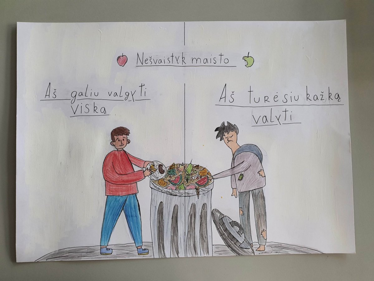 Šiandieniniame pasaulyje gausu iššūkių, tokių kaip badas, skurdas, karas, nelygybė, klimato kaita ir pan. Maistas yra labai svarbi visų šių įvykių dalis. Net ir XXI a. pasaulyje vyrauja nelygybė, vienur susiduriama su skurdu, badu, maisto stygiumi, kitur – su maisto švaistymo problema. Pasaulinės maisto dienos (spalio 14 d.) proga organizuojamas piešinių konkursas "Pasaulis, kuriame maisto užtenka visiems". Konkursas skirtas atkreipti mokinių dėmesį į ekologišką, tvarų, sveiką, kokybišką maistą bei maisto švaistymo problemą. Pasitelkę fantaziją mokiniai nupiešė piešinius, kuriuose atsispindi tvarumo, ekologijos, kokybiško ir sveiko maisto tema, kurio užtenka VISIEMS. Įsivaizduokite, kaip atrodytų pasaulis, jei visi turėtų galimybę maitintis SVEIKAI IR KOKYBIŠKAI. Rūpinkimės pasauliu, kuriame gyvename !