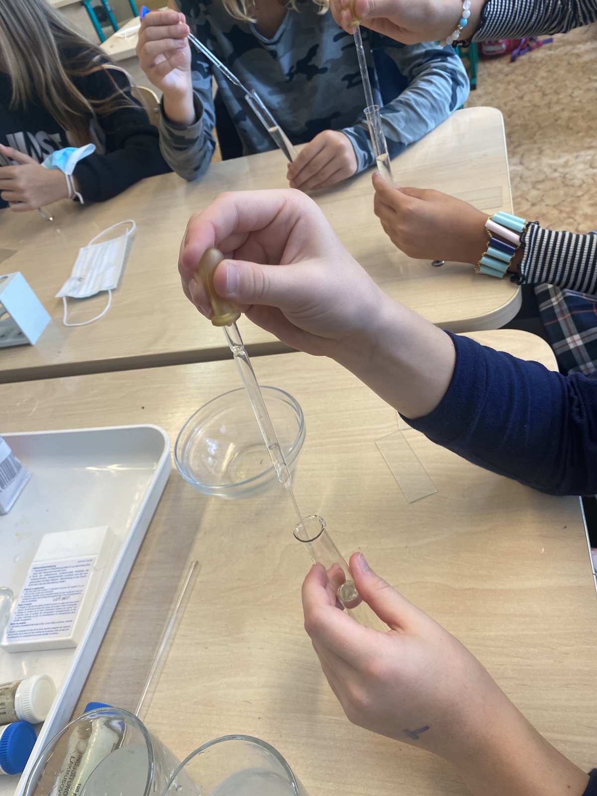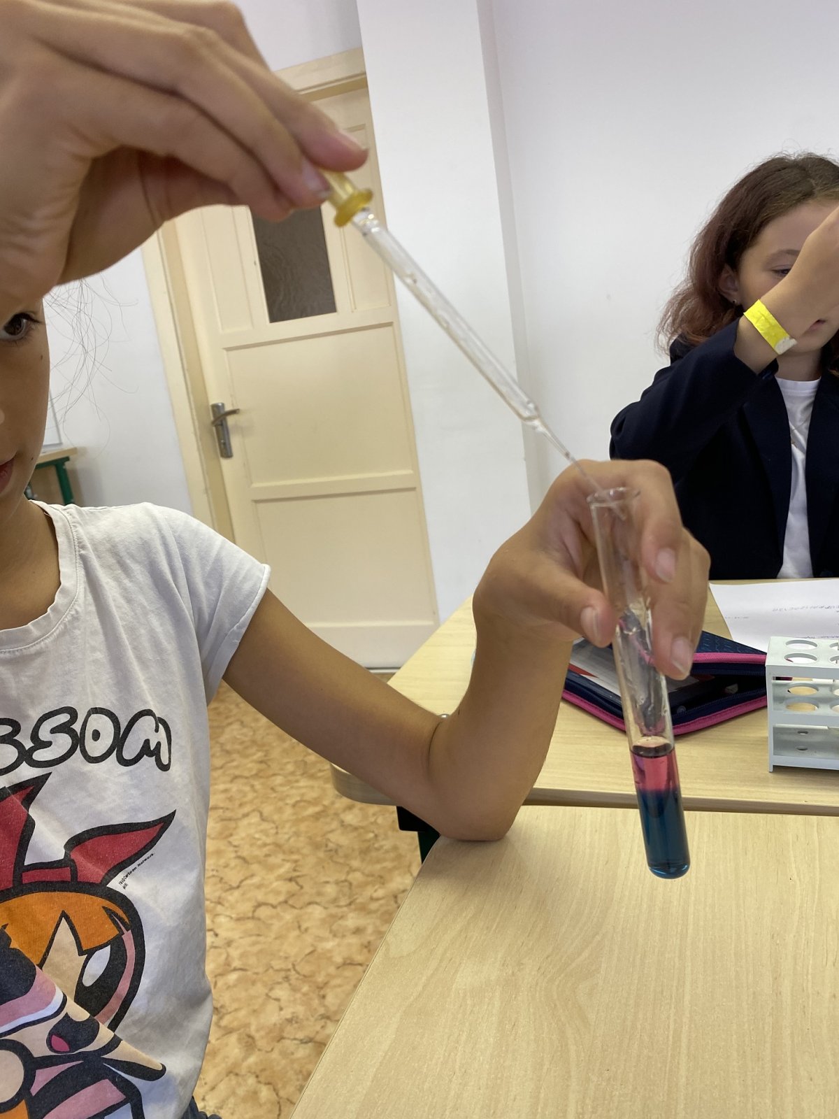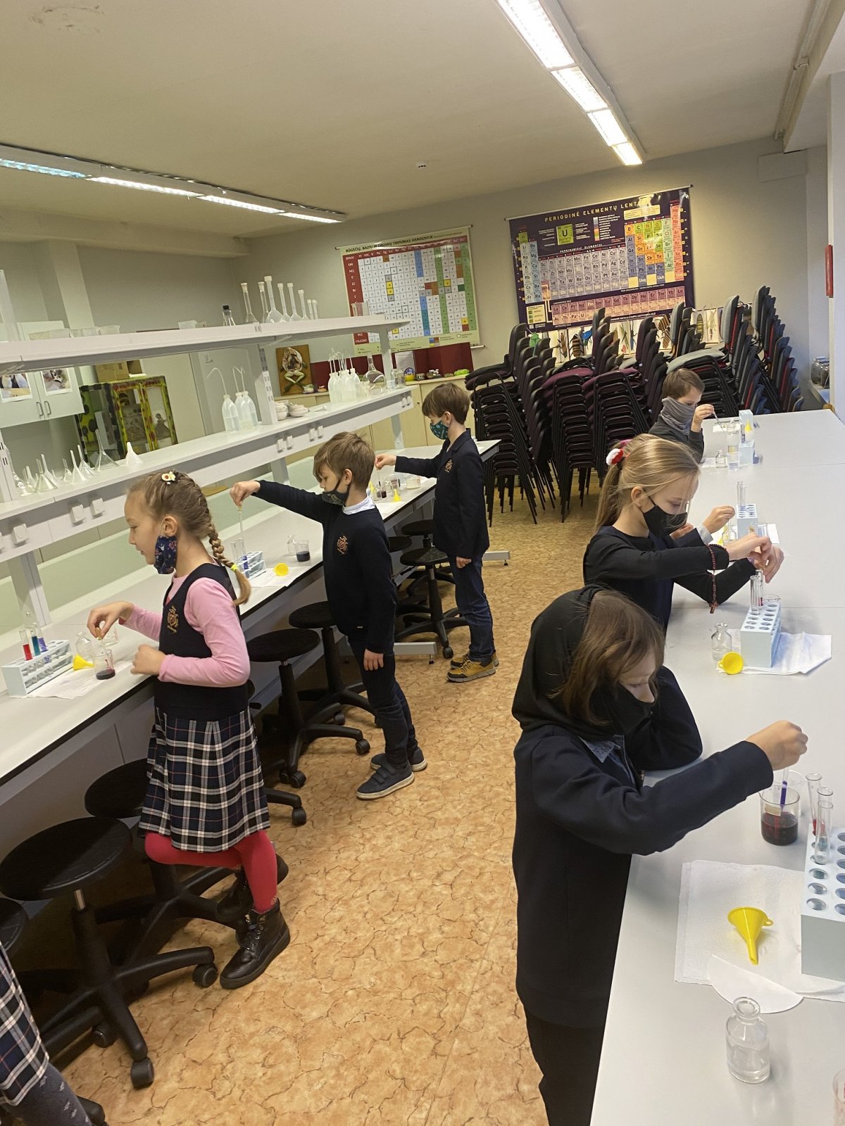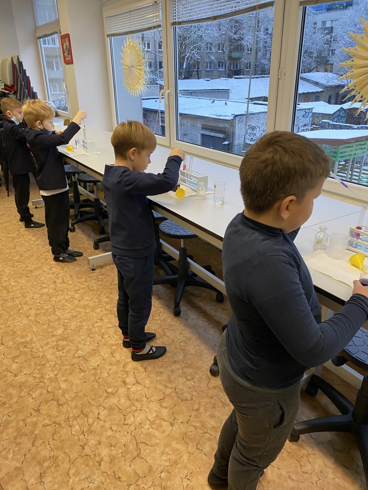 Rugsėjo mėnesį iš mokyklos aplinkoje esančių objektų (balos vandens, šakelių, augalų) pagamino mirkinius, kuriuose užsiveisė mikroorganizmai klumpelės. Mikroskopu stebėjo klumpelių reakciją į įvairius gėrimus: kavą, arbatą, limonadą, sultis, pieną ir kt. Rezultatus pateikė skaidrių pristatymuose. Mokiniai iš raudongūžio kopūsto gamino indikatoriaus tirpalą. Raudongūžio kopūsto tirpalu buvo tiriami rūgštiniai ir šarminiai tirpalai, vykdomos neutralizacijos reakcijos.