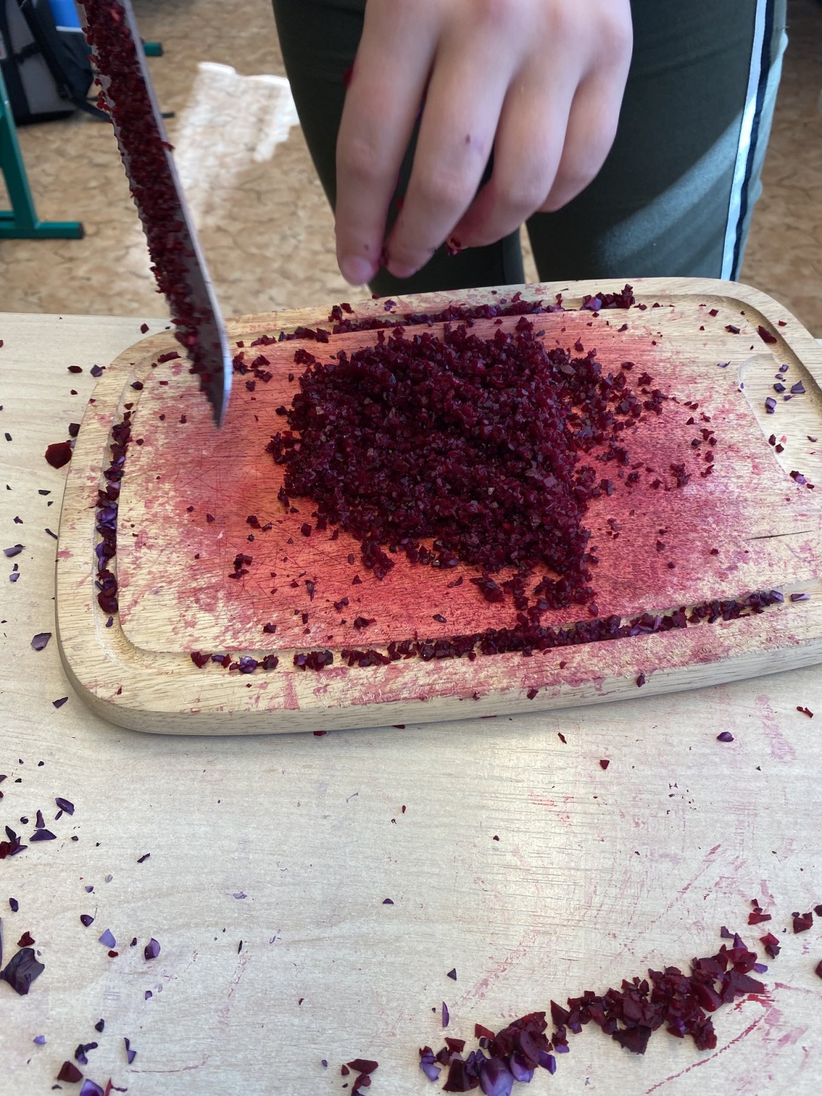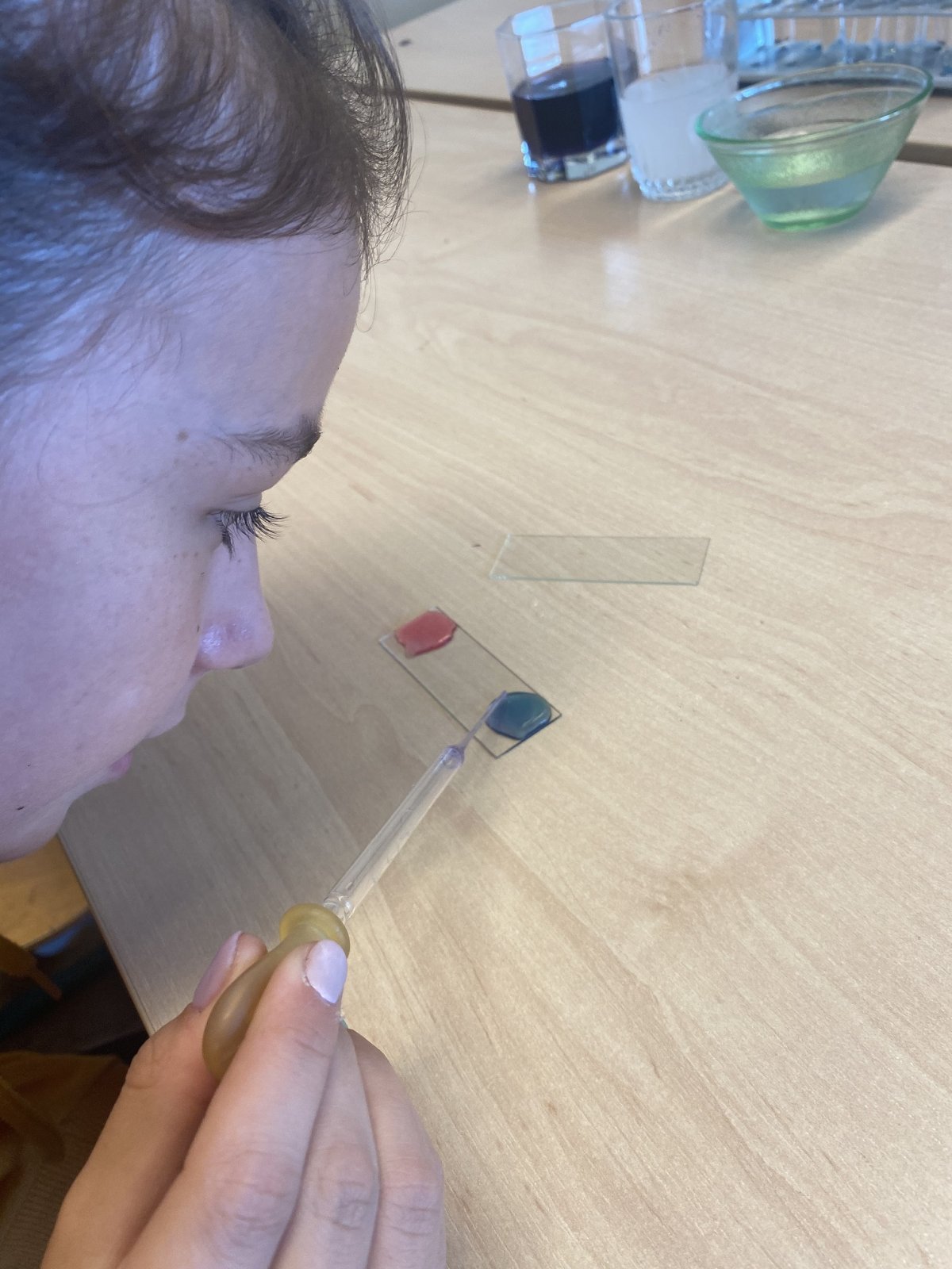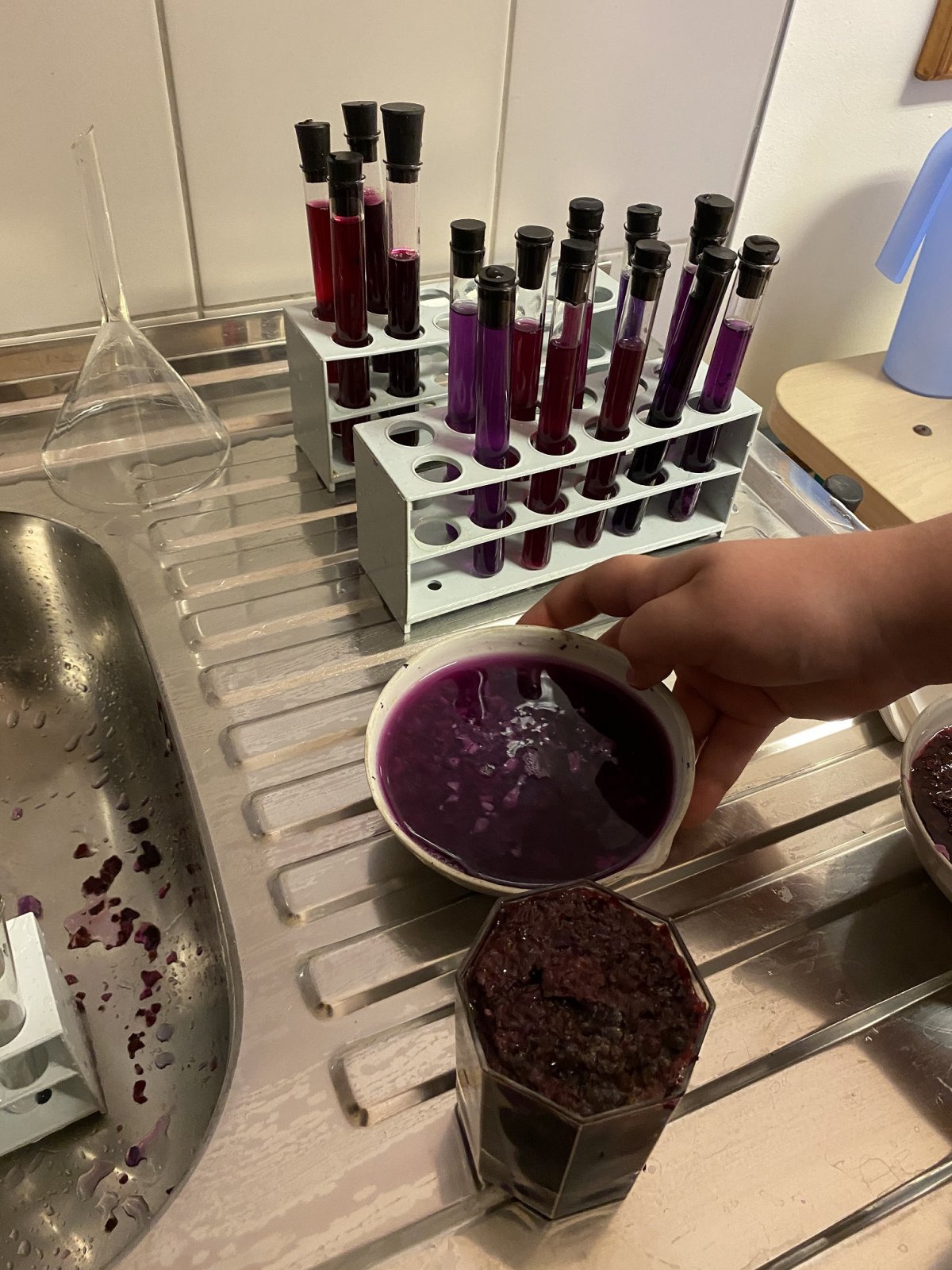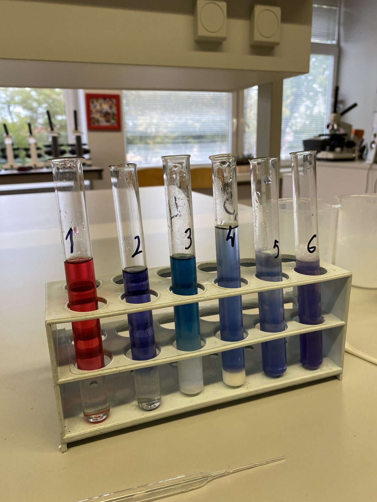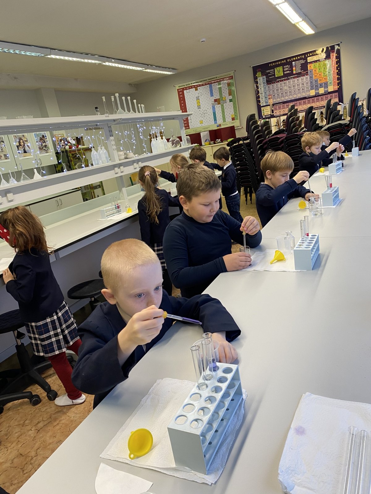 Rugsėjo mėnesį iš mokyklos aplinkoje esančių objektų (balos vandens, šakelių, augalų) pagamino mirkinius, kuriuose užsiveisė mikroorganizmai klumpelės. Mikroskopu stebėjo klumpelių reakciją į įvairius gėrimus: kavą, arbatą, limonadą, sultis, pieną ir kt. Rezultatus pateikė skaidrių pristatymuose. Mokiniai iš raudongūžio kopūsto gamino indikatoriaus tirpalą. Raudongūžio kopūsto tirpalu buvo tiriami rūgštiniai ir šarminiai tirpalai, vykdomos neutralizacijos reakcijos.