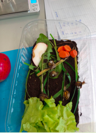 Spalio mėnesį savo pagamintuose nameliuose augino skirtingas moliuskų pilvakojų rūšis ir stebėjo jų mitybos ypatumus, matavo svorio prieaugį. Rezultatus pateikė skaidrių pristatymuose. Chemijos kabinete 8a_s klasės mokiniai atloko praktinį darbą "Chromatografija - spalvų skaidymas".