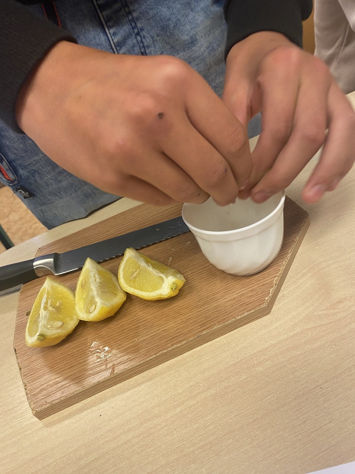 Gruodžio mėnesį eksperimentuodami nuotoliniu būdu bandė išgauti energijos iš įvairių vaisių ir daržovių: uždegti elektros lemputę, pakrauti mobilų telefoną. Rezultatus skaidrėse pateiks sausio mėnesį.