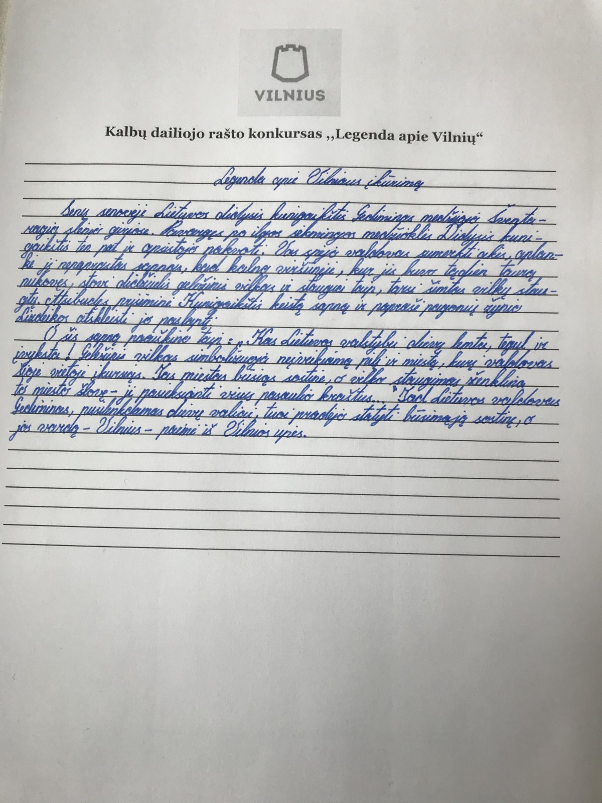 Prie Vilniais miesto savivaldybės kvietimo paminėti Vilniaus gimtdienį prisijungė ir mūsų mokyklos 1-8 klasių mokiniai. Mokiniai ruošė projektinius darbus, piešė piešinius, pirmokėliai sukūrė spalvotą su 698 skaičiukais tortą. Klasės valandėlės metu, mokiniai žiūrėjo teatralizuotą edukacinį pasakojimą „Vilniau, švęskim!“, sprendė, kryžiaižodį.