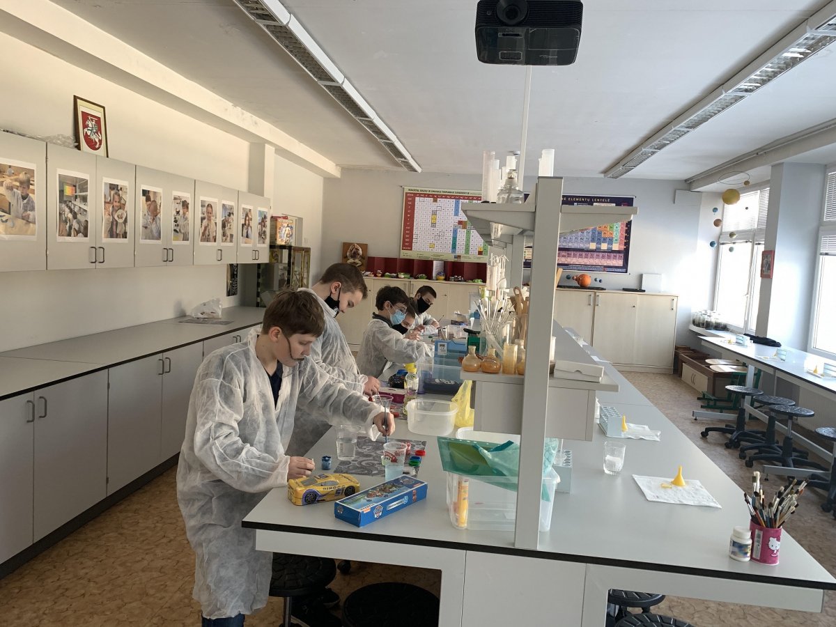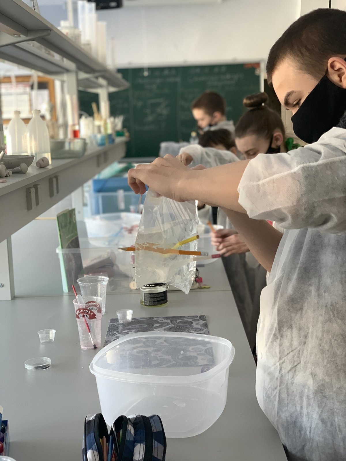 1c klasės mokiniai atliko praktinį darbą su ledu.