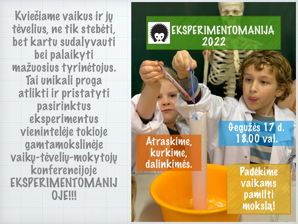 Kvietimas į gamtamokslinę konferenciją "EKSPERIMENTOMANIJA"