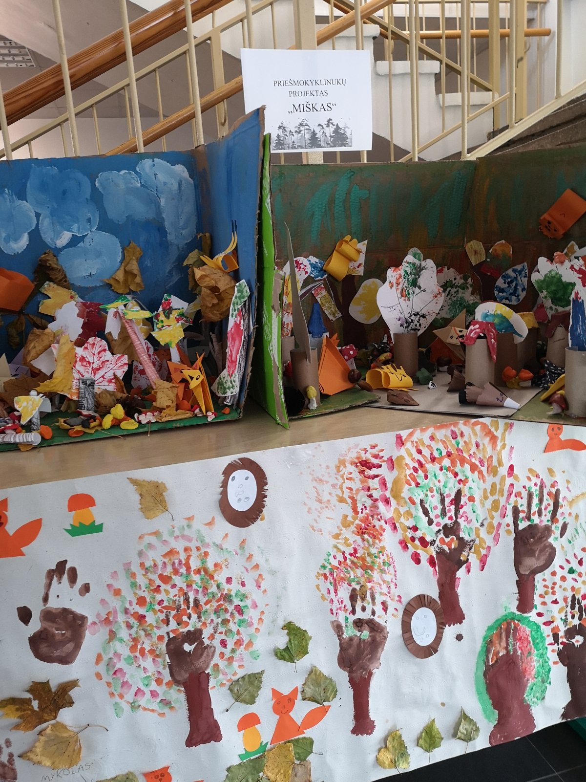 Spalio 17-21d. priešmokyklinio ugdymo ugdytiniai pažindinosi su miške danžiausiai sutinkamais medžiais, grybais bei gyvūnais. Visą savaitę veiklų metu ugdytiniai ne tik ieškojo informacijos knygose bei internete, bet ir kūrė, konstravo, modeliavo, lankstė miško augmeniją ir gyvūniją.