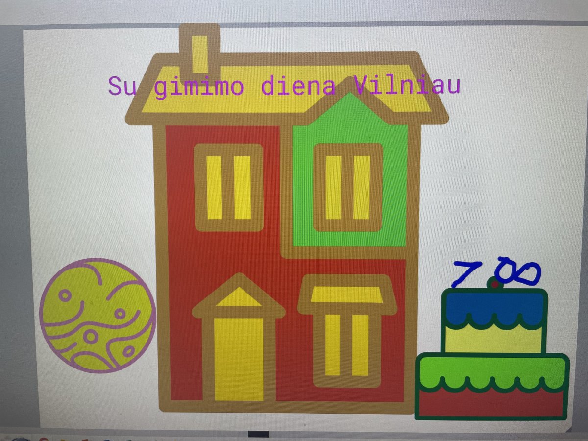įvairiais būdais paminės šį gražų jubiliejų. 1A klasės mokiniai per informacinių technologijų būrelį, kūrė atvirukus, skirtus Vilniaus miesto jubiliejui. Mokiniai savo kūryboje naudojo „Autodraw“ ir „Paint“ programas. Kurdami atvirukus, taikė gimtosios ir užsienio kalbos (anglų), dailės dalykų žinias. Sukūrė nuostabius atvirukus. Labai džiaugiamės, kad informacinės technologijos skverbiasi į ugdymo procesą, leidžia mokiniams atskleisti savo gebėjimus ir kūrybinę laisvę.