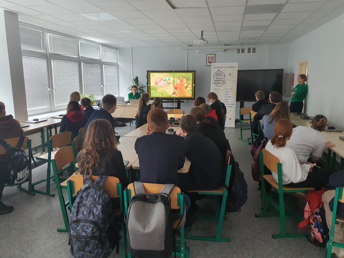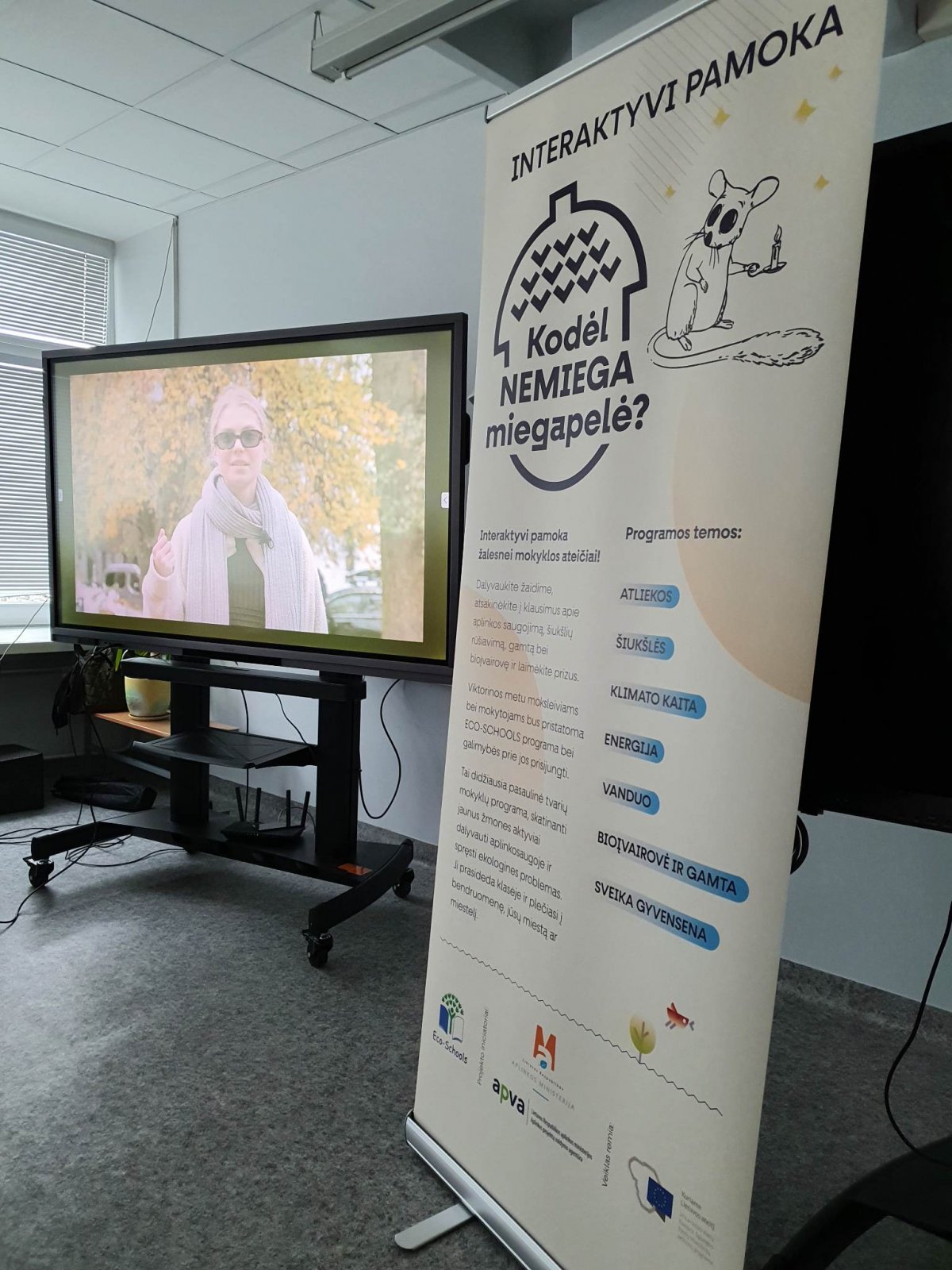 Interaktyvios pamokos metu moksleiviams bei mokytojams buvo pristatoma ECO-SCHOOLS programa bei galimybės prie jos prisijungti. Moksleivių laukė smagi viktorina, prizai bei suvenyrai! Mokytojams programos ECO-SCHOOLS veiklų pristatymas bei tvarios dovanos. Mokiniai susipažino su didžiąja miegapele, kuri skatino prisidėti išsaugoti kitus gyvūnus bei Lietuvos gamtos autentiškumą. Tapti atsakingais ir rūpestingais piliečiais, tausojančiais aplinką ir gamtos dovanas.