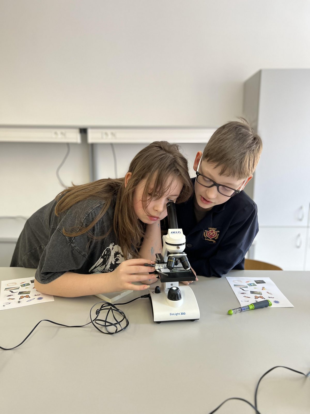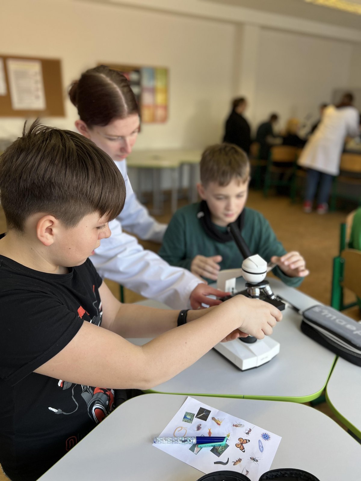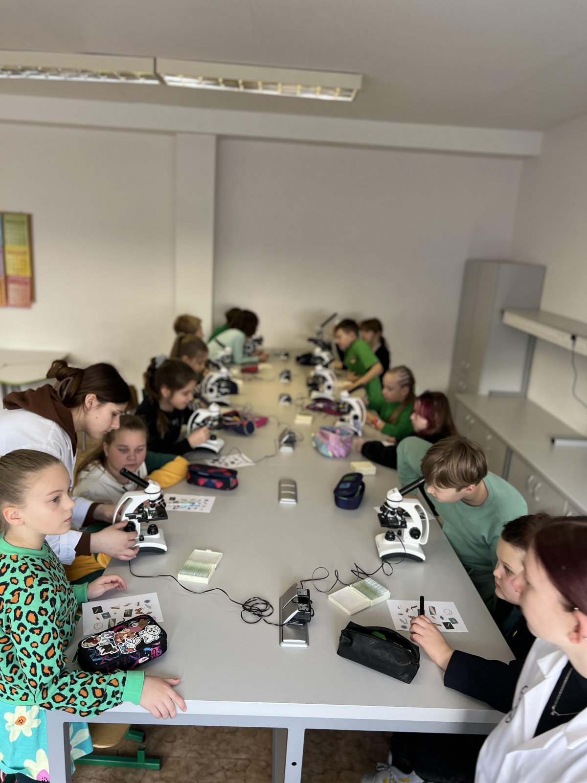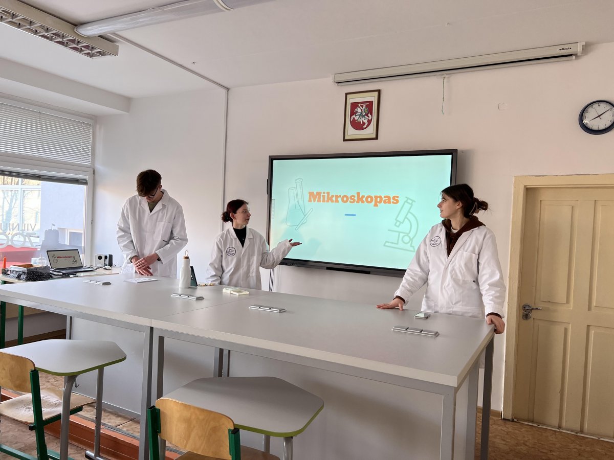 Kovo 22 d. Vilniaus karaliaus Mindaugo mokykloje gamtamokslines pamokas 4 - ų klasių mokiniams vedė Vilniaus ,,Minties’’ gimnazijos biologijos kurso gimnazistai. Įtvirtinę žinias apie mikroskopą, pamokų dalyviai tyrė įvairiausius gyvūnus ir jų organus. Stebėjo bakterijas, pirmuonis, muses, drugelius, uodus, kirmėles ir kitus bstuburius bei stuburinius gyvūnus. Džiugu buvo matyti susidomėjimą, darbinę atmosferą ir gerą nuotaiką!