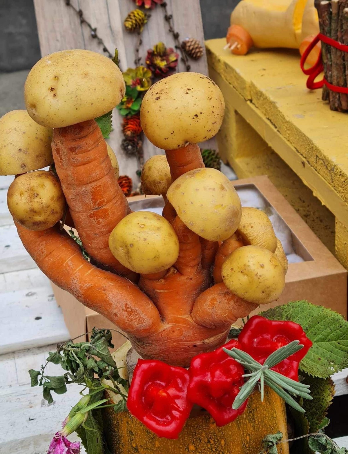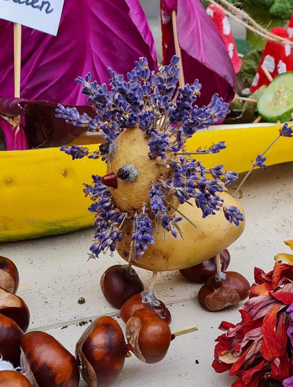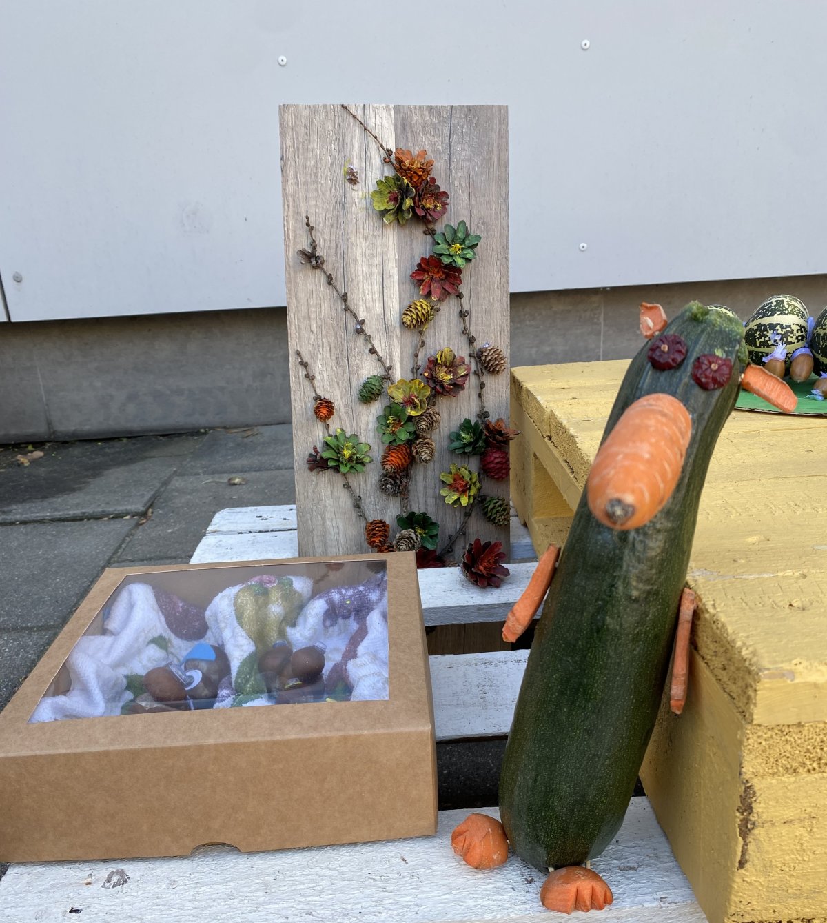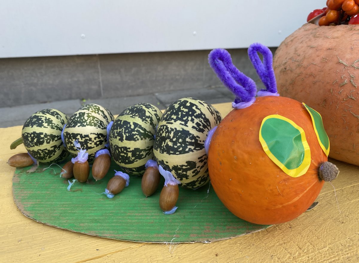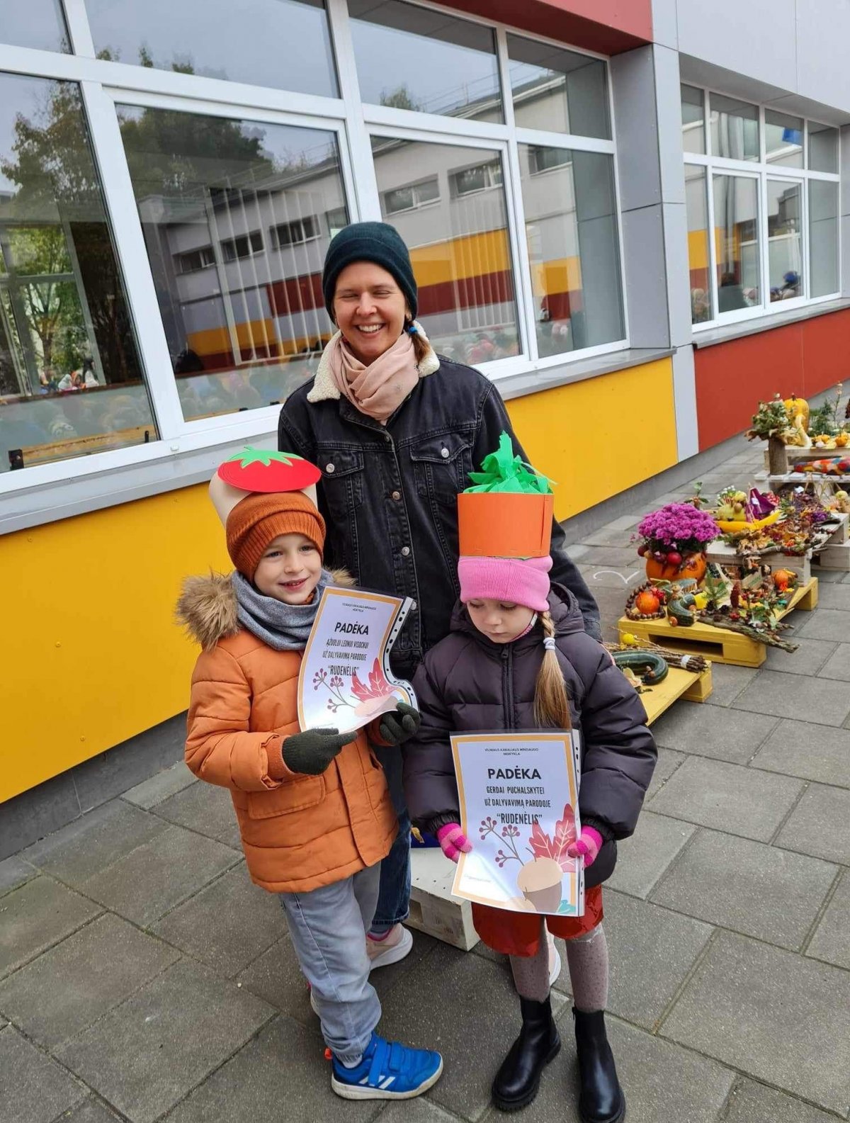 Mokiniai kartu su tėveliai, mokytojai pristato savo kūrybinius darbelius iš daržovių, vaisių, gamtinių medžiagų.