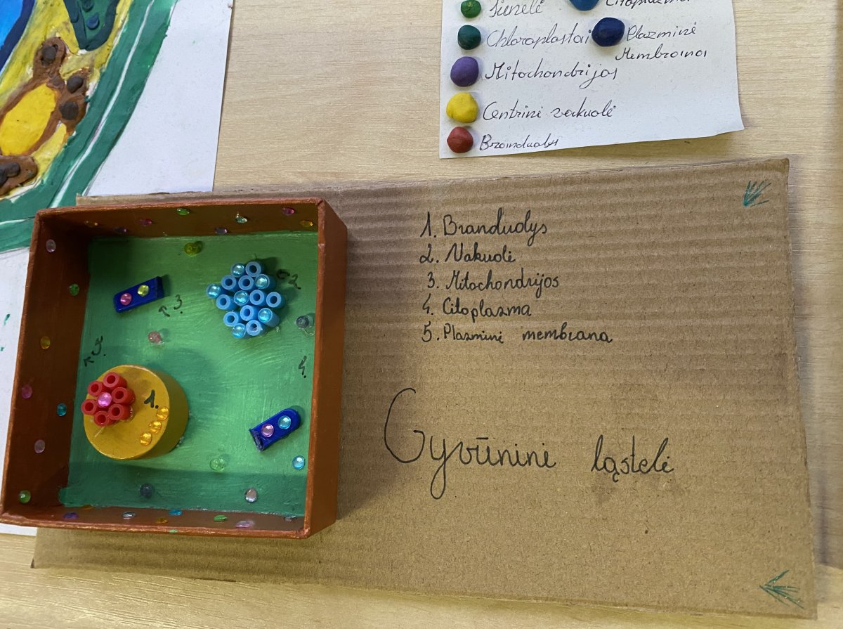 Spalio mėnesį klasių mokiniams vyko pamokos apie „Augalines ir gyvūnines ląsteles“. Pamokų tikslas buvo išmokti atpažinti šių ląstelių organeles nusakyti jų atliekamas funkcijas, taip pat mokėti palyginti augalo ir gyvūnų ląsteles . Biologijos pamokų metu mokiniai išmoko pagrindinius principus bei skirtumus kuriant augalinės ir gyvūninės kilmės ląstelių modelius. Tam panaudojo įvairias medžiagas (kartoną, spalvotą popierių, putplastį, daržoves, vašką, plastiliną ir kitas medžiagas). Atliko visas kūrybines užduotis pagal paveikslėliuose pateiktas schemas.