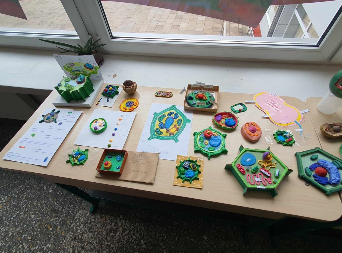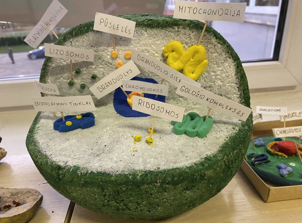 Mūsų mokyklos septintokai savo kūrybinius-praktinius ląstelių modelius pristatė prieš rudens atostogas, o lapkričio pradžioje „Augalinių ir gyvūninių ląstelių modeliai“ papuošė mūsų mokyklos II aukšto foje.