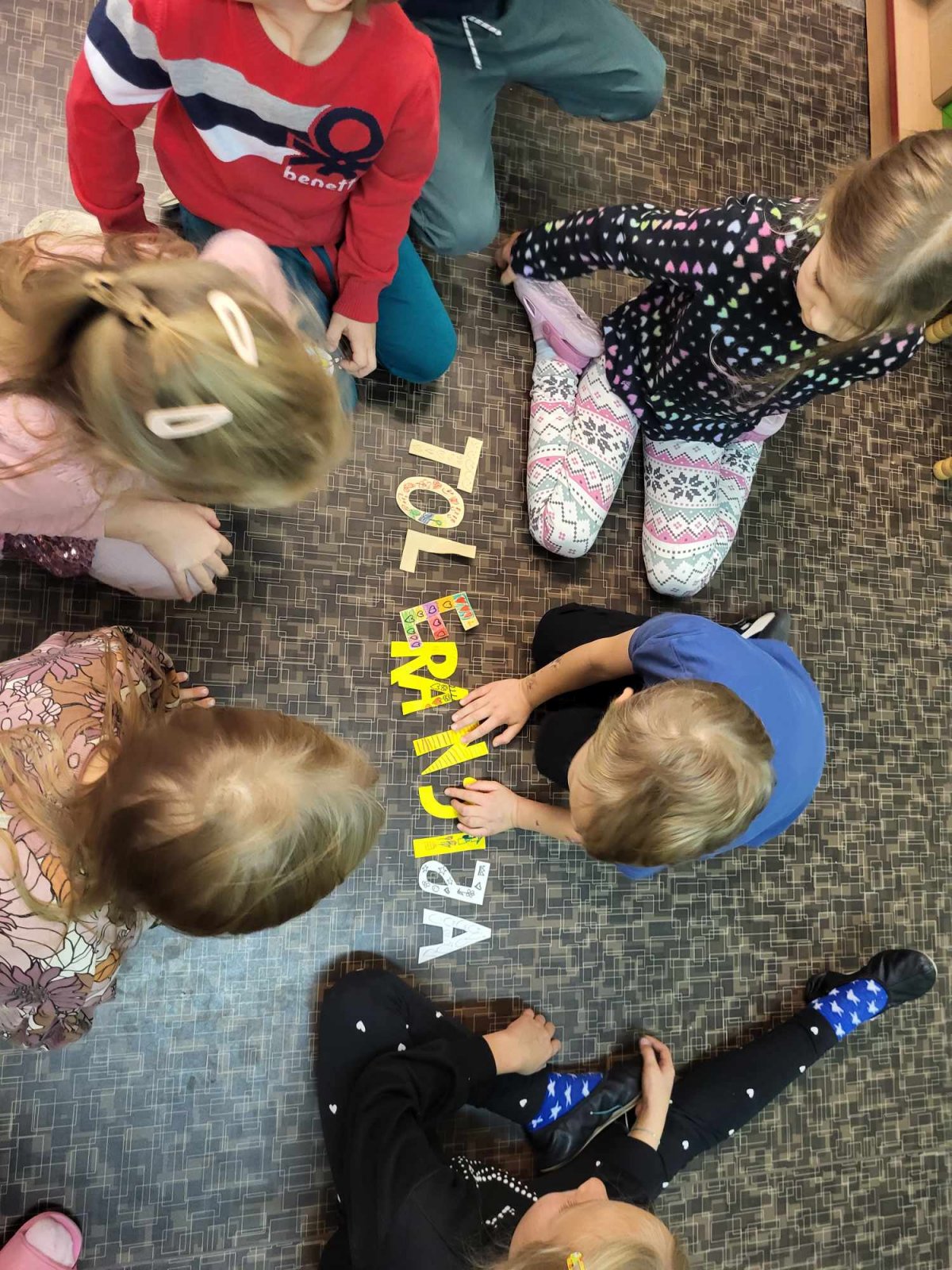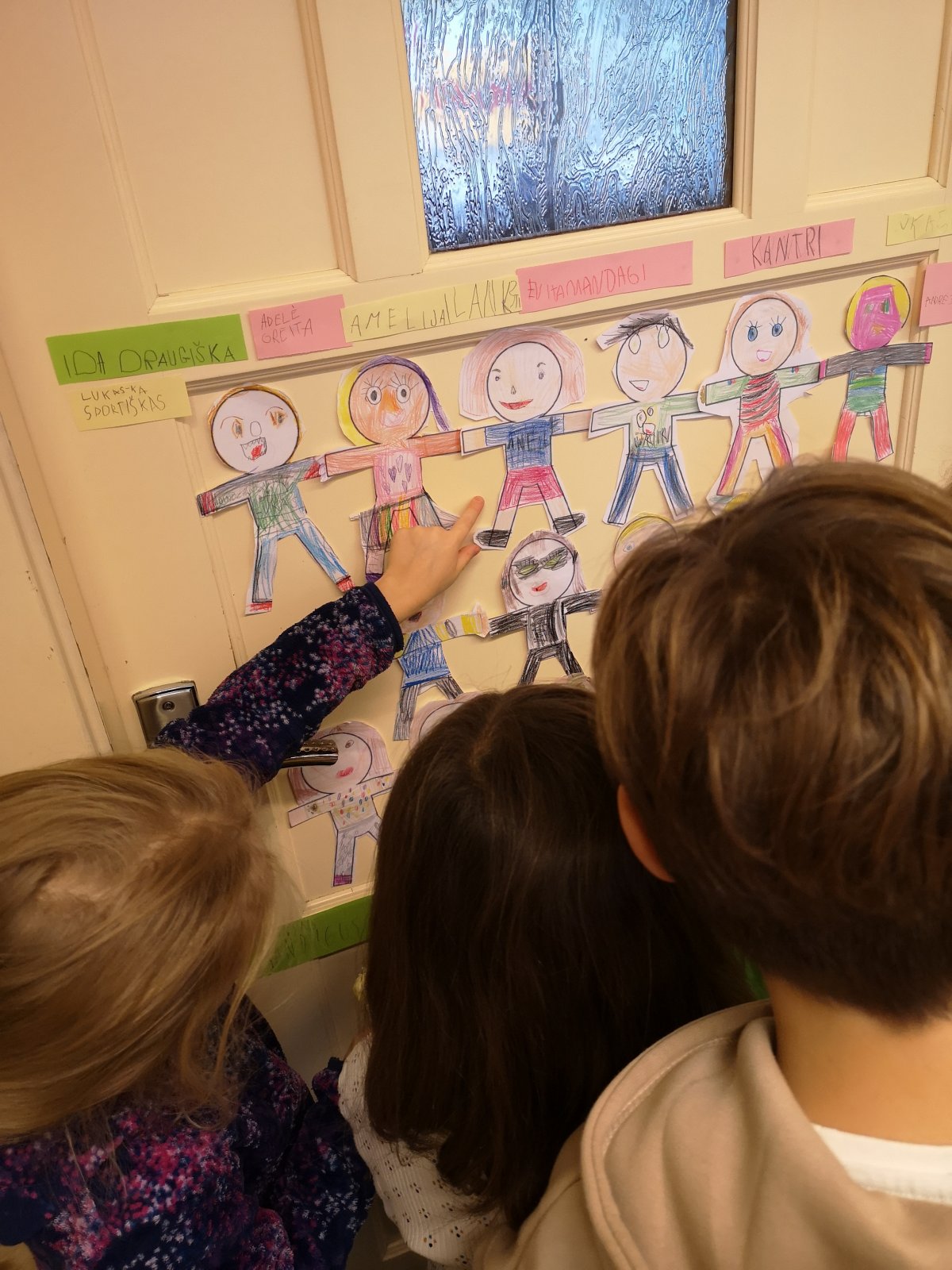 Išklausę skaitomų pasakojimų, įvardijo, koks elgesys buvo tolerantiškas, kuris ne ir kodėl. Grįžę į grupes vaikai piešė save, vedžiojo delniukus, dėliojo žodį tolerancija tokiu būdu įtvirtinami žinias.