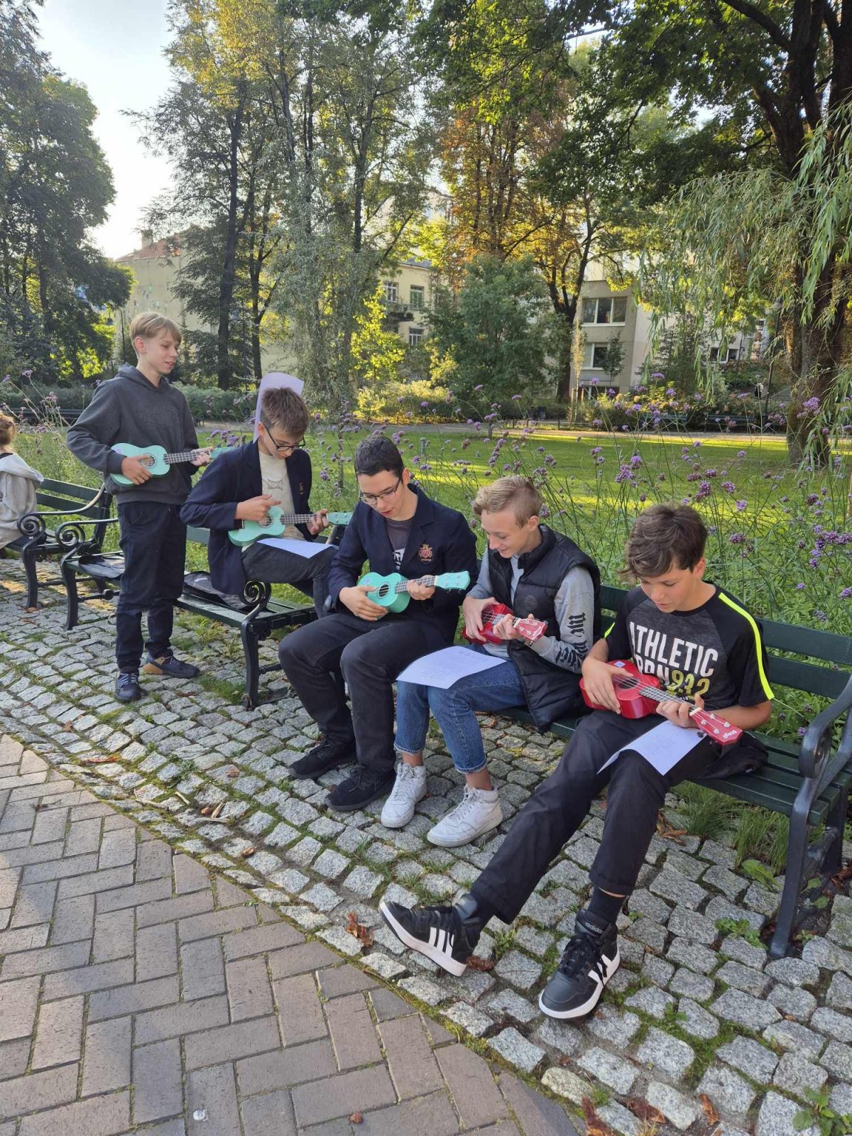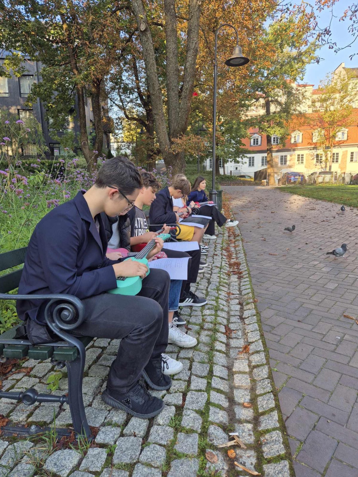 Ukulėlių skambesys Reformatų parke! 8a kl. mokiniai kartu su muzikos mokytoja Rugile šiltą rudens rytą turėjo muzikos pamoką netradicinėje erdvėje. Mokiniai grupėse mokėsi ne tik groti žinomas dainas, bet taip pat ir jas dainuoti. Mokėsi klausytis vieni kitų ir bendradarbiauti - susigroti.