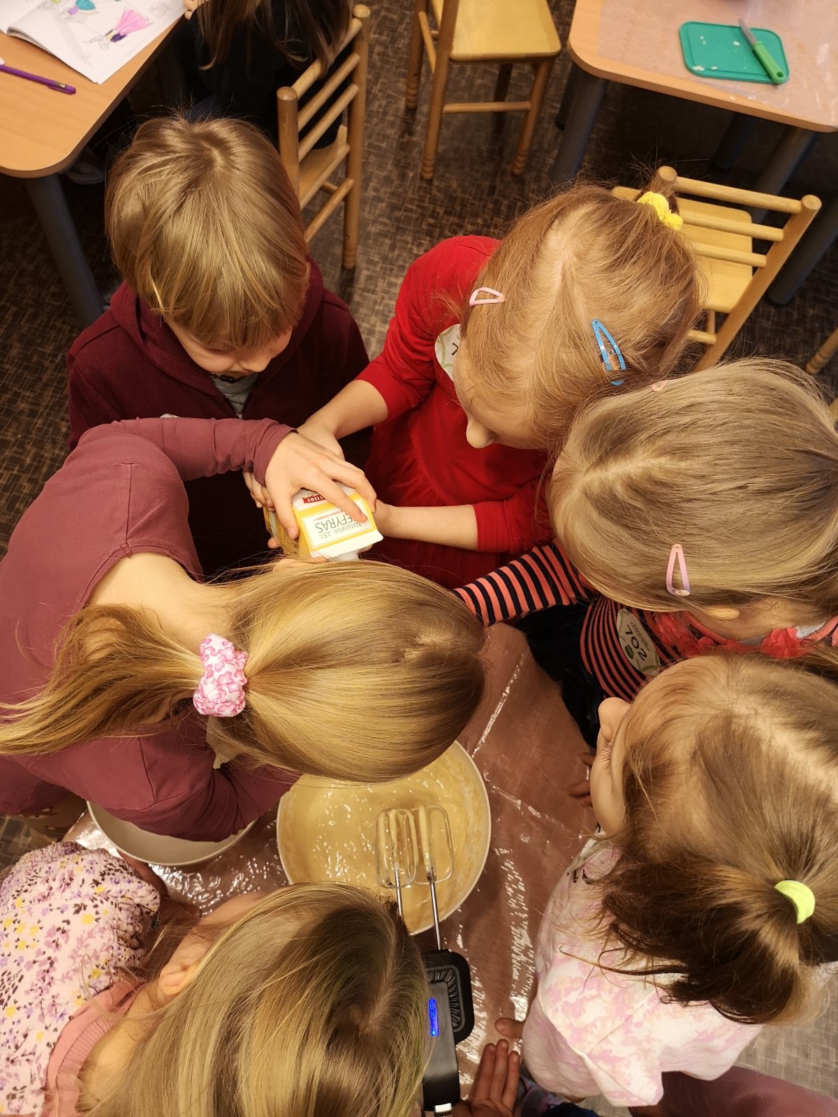 Ir koks gi gimtadienis be pyrago! Mažieji mokyklos bendruomenės nariai, visi drauge maišė tešlą, kepė ir vaišinosi pyragu.