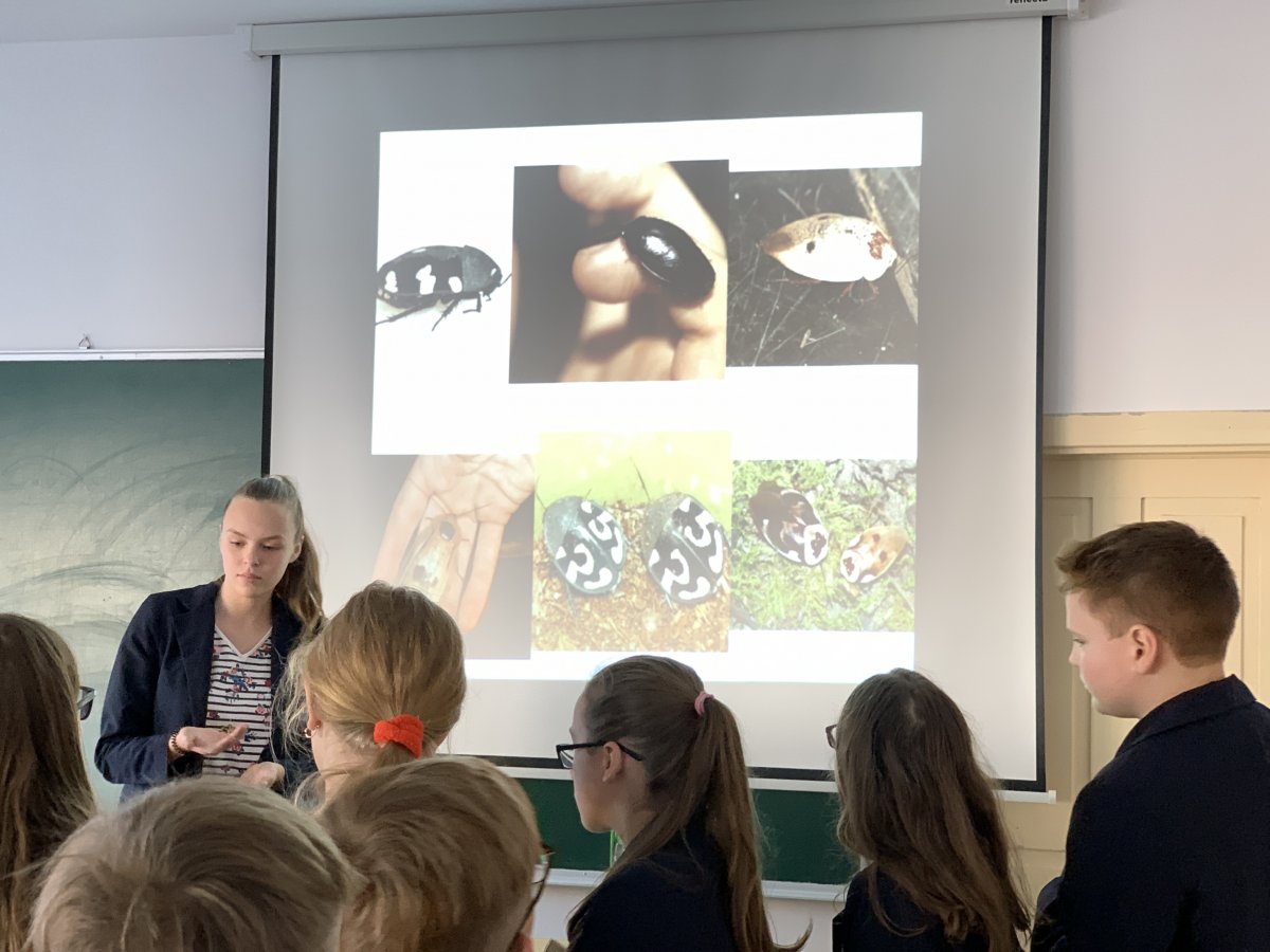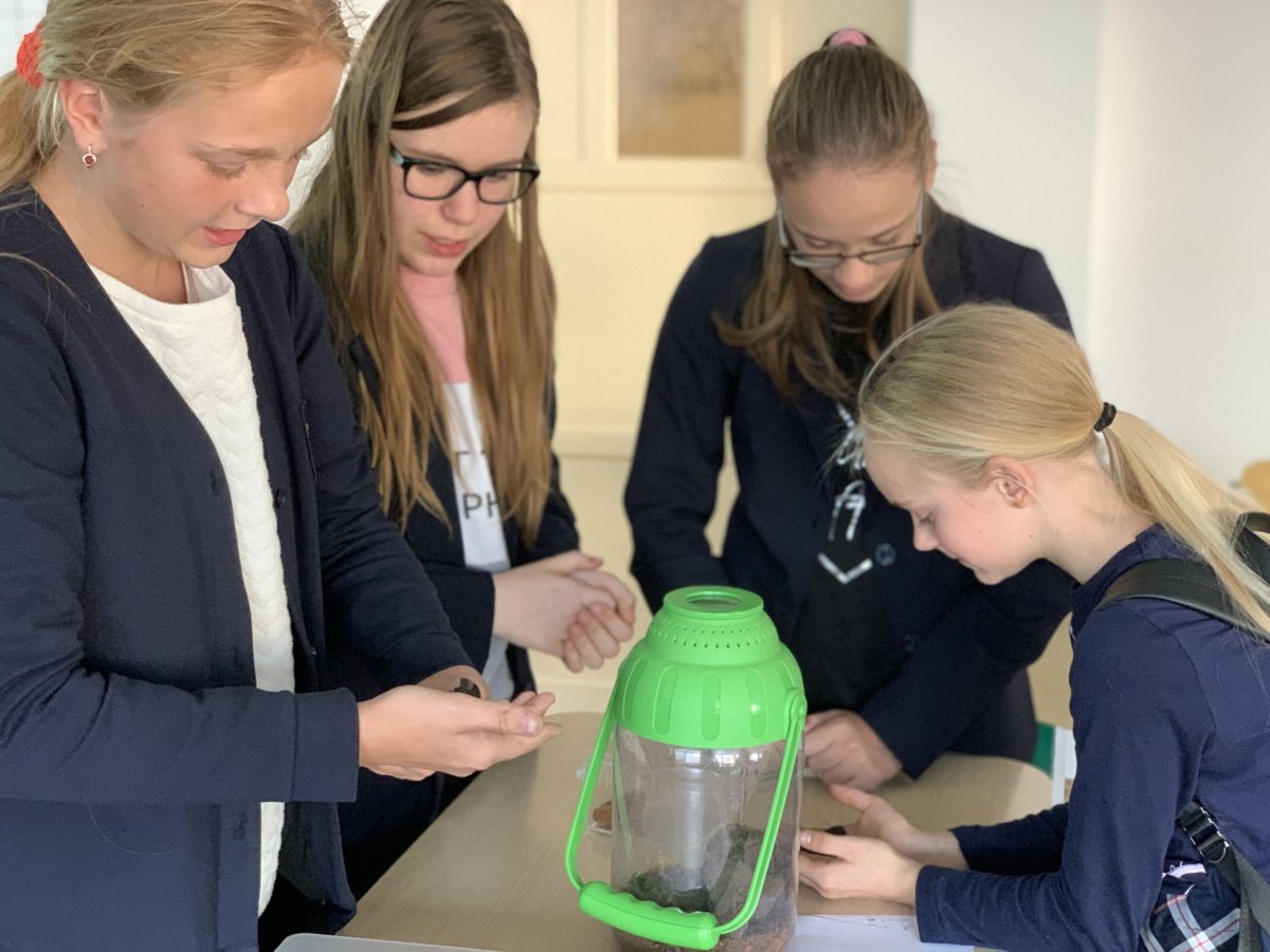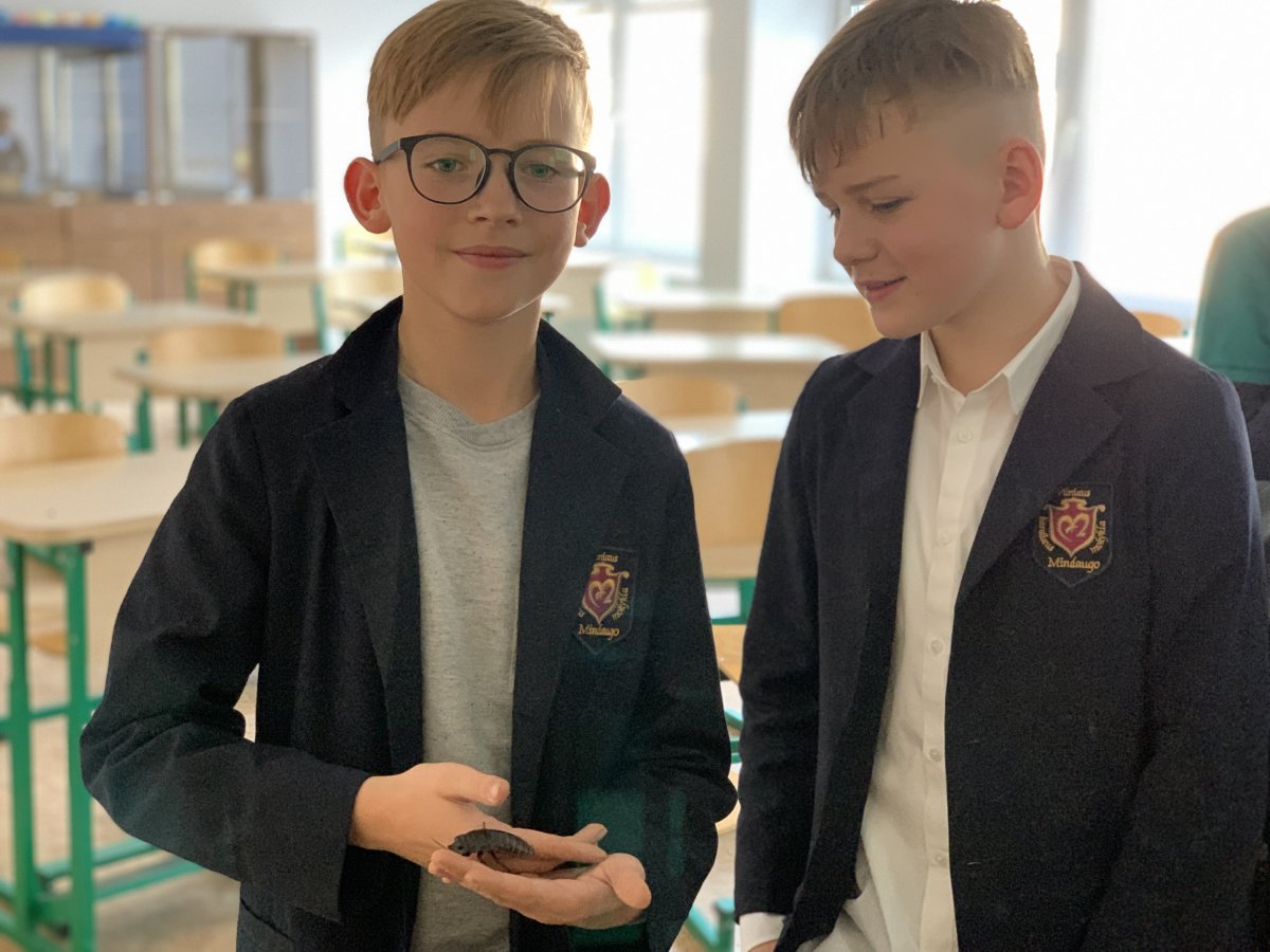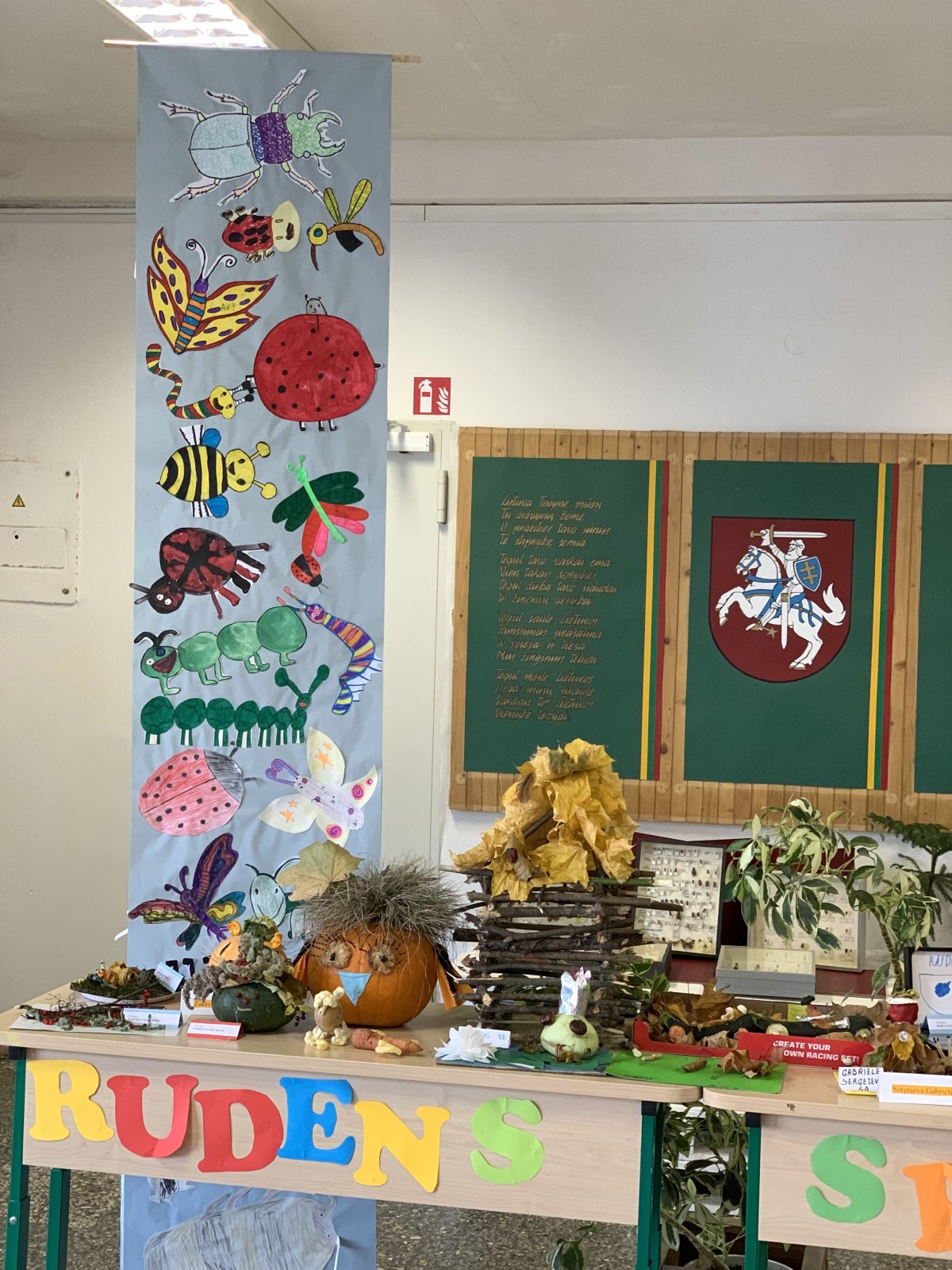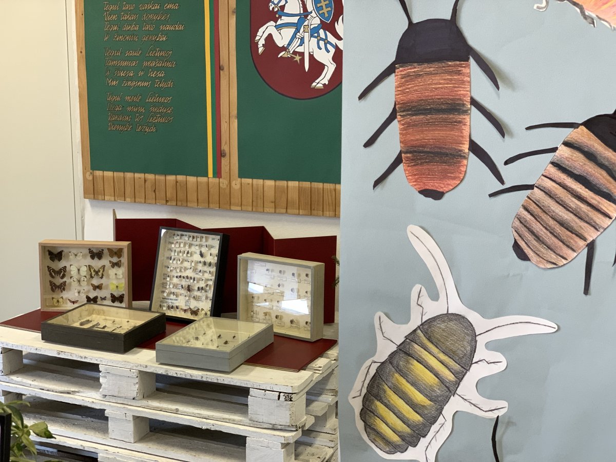 Antrame aukšte, šalia nuostabių rudens gėrybių įsitaisė gausi spalvingų, didelių vabzdžių kolekcija, kurią kūrė 5-8 klasių mokiniai. Besidomintys nariuotakojų pasauliu galėjo susipažinti su Lietuvoje gyvenančių vabzdžių mokslinėmis kolekcijomis, bei su mokykloje gyvenančiais Madagaskaro tarakonais ir Vietnamietiškomis gyvalazdėmis. Pranešimus apie šiuos vabzdžius paruošė ir pristatė 8a klasės mokinės Eva ir Justė.