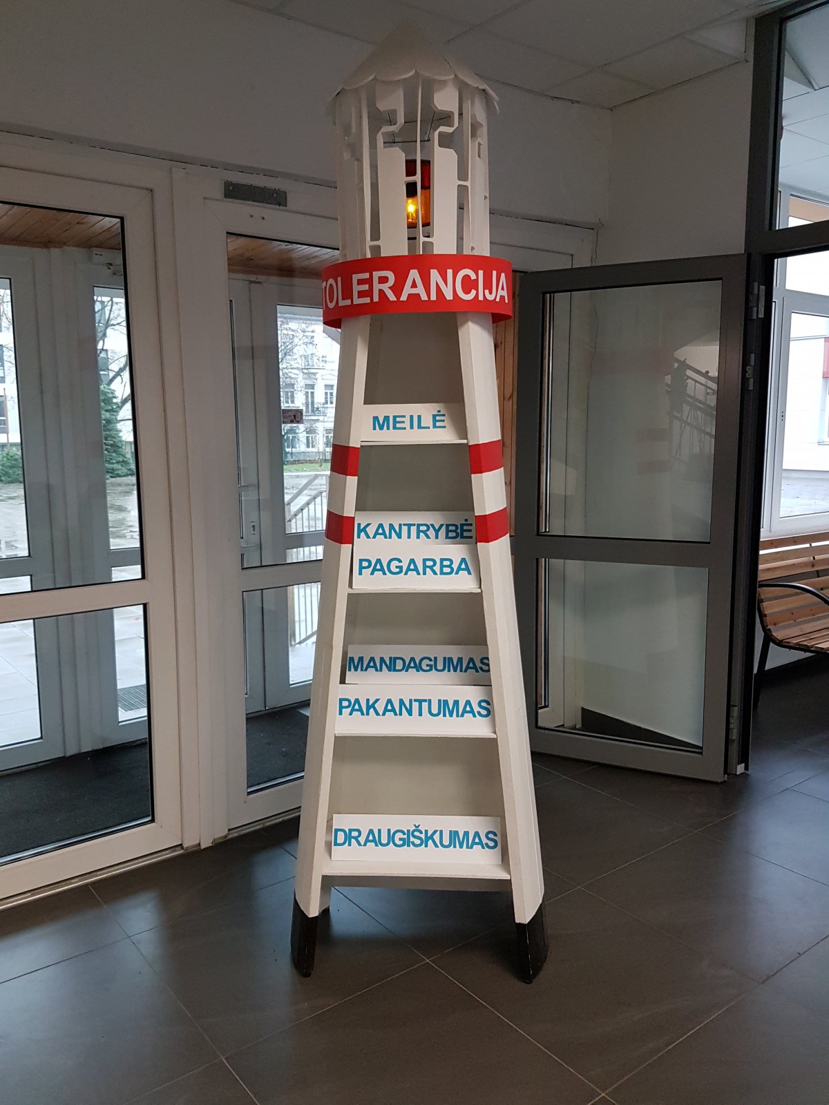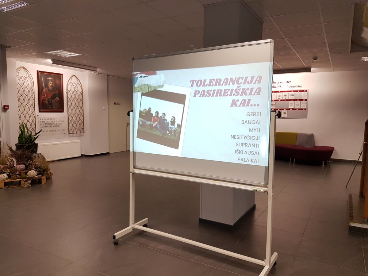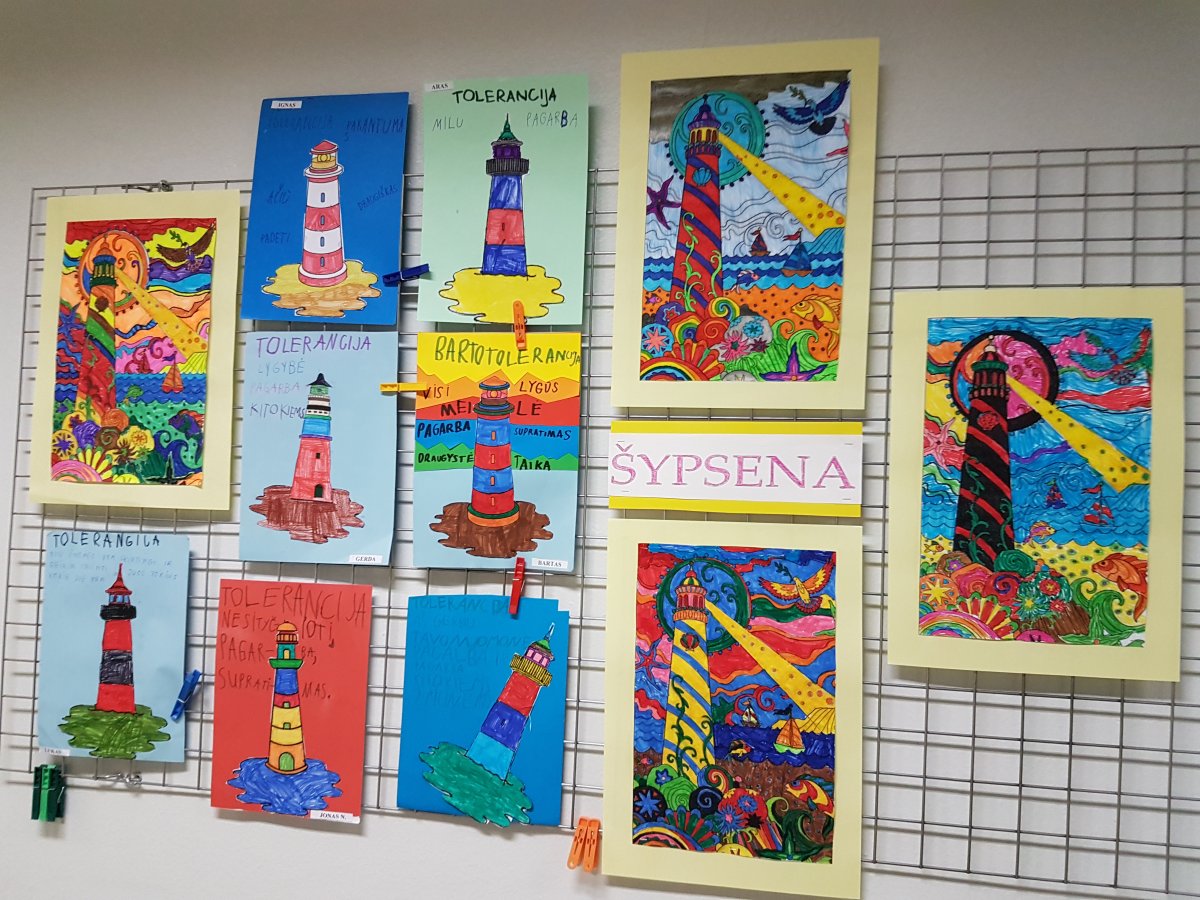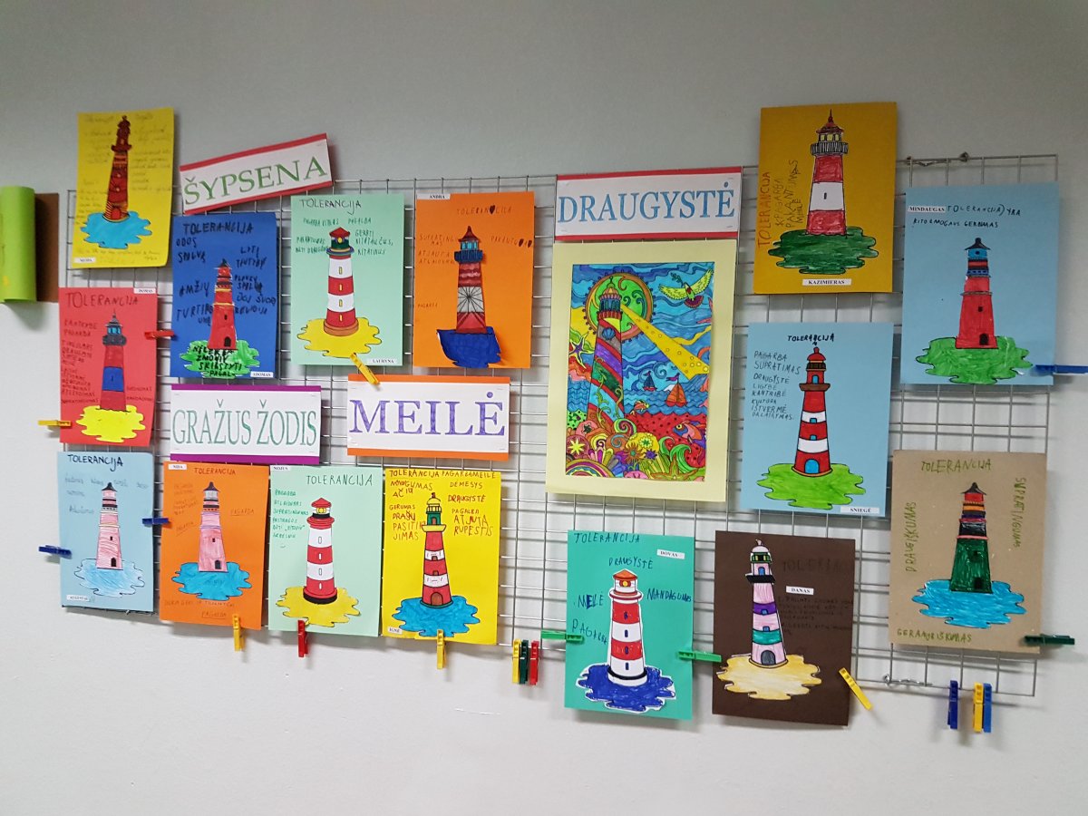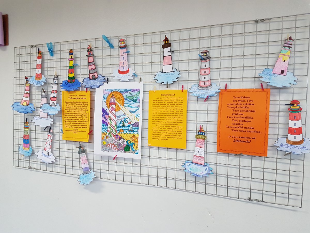 Tai supratimas, draugiškumas, atjauta, pagarba, pakantumas kitaip atrodančiam, kitaip mąstančiam žmogui. Šiuos ir kitus tolerancijos sąvoką apibūdinančius žodžius, atlikdami namų darbą kartu su savo šeima, mokiniai rašė ant pačių nuspalvinto švyturio – šių metų Tarptautinės tolerancijos dienos simbolio – trafareto. Šios dienos paminėjimas lapkričio 16 d. ir jai skirti savaitės renginiai – pokalbiai, diskusijos, filmai, situacijų nagrinėjimas, bendri klasės mokinių piešiniai, integruotos pamokos – tapo mokyklos tradicija. Šių metų Tolerancijos savaitės renginiuose buvo ypač akcentuota viena iš mokyklos puoselėjamų vertybių – bendruomeniškumas. Ypač daug džiaugsmo mokyklos bendruomenei suteikė Tolerancijos savaitę vainikavęs penktadienio renginys ,,Mokykla šoka“, kurį suorganizavo jaunas ir šaunus šokių mokytojas Evaldas Račkauskas. Ačiū visiems, padėjusiems suorganizuoti Tolerancijos savaitę ir dalyvavusiems joje.