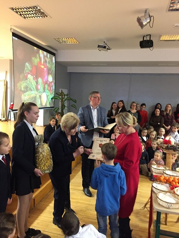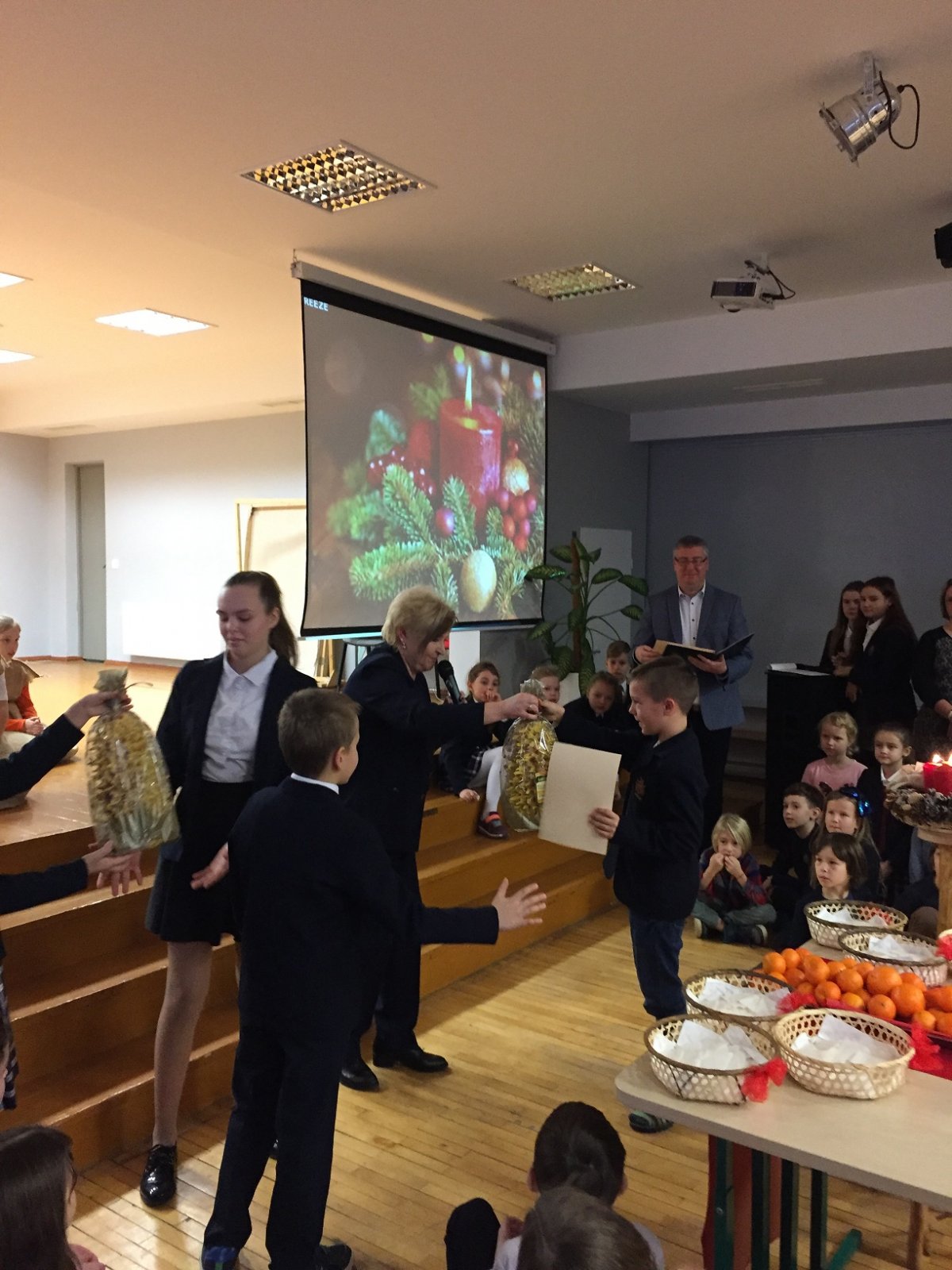 Mokyklos direktorė įteikė gruodžio mėnesį vykusių konkursų „Kalėdiškiausia klasė“, Kalėdinė alėja ir „Atsispausk 2019 kartų“ apdovanojimus.