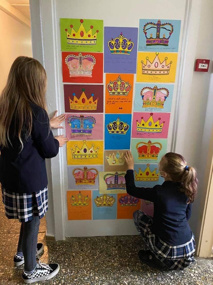 Prie klasių kabinetų karūnų dekoracijų paroda. |