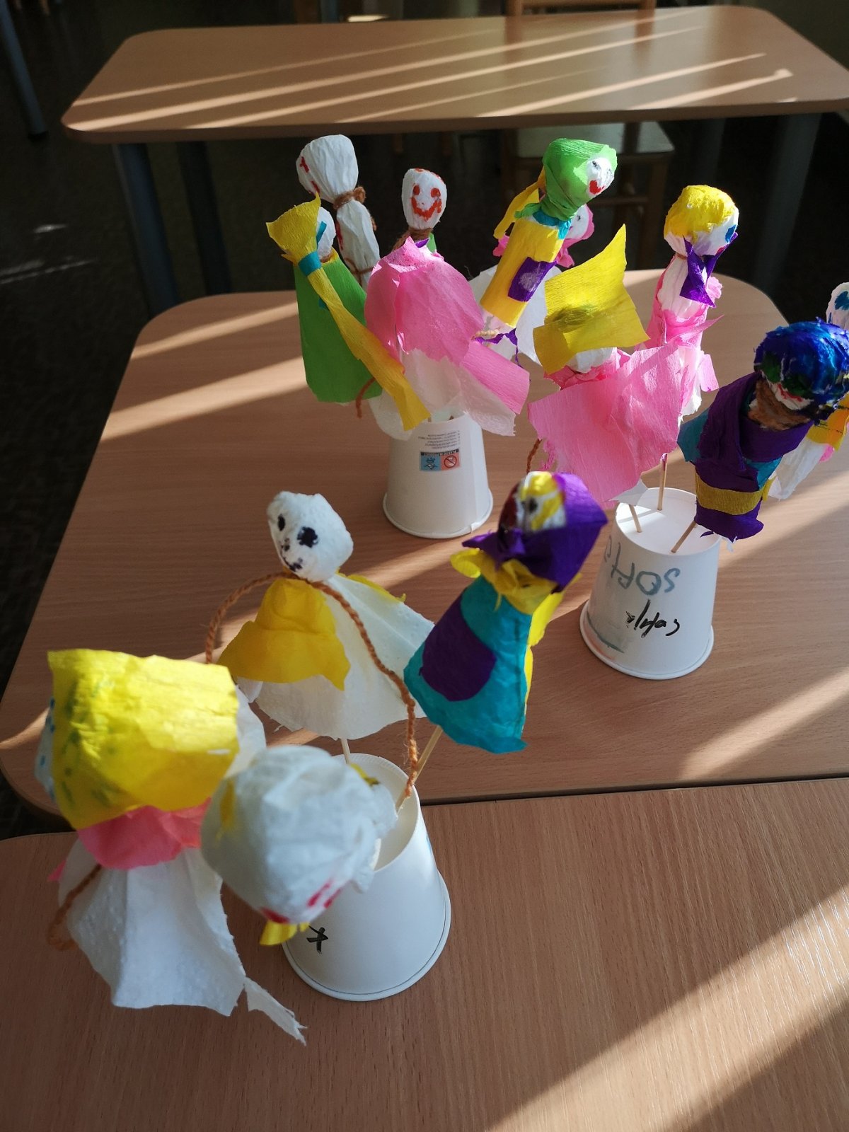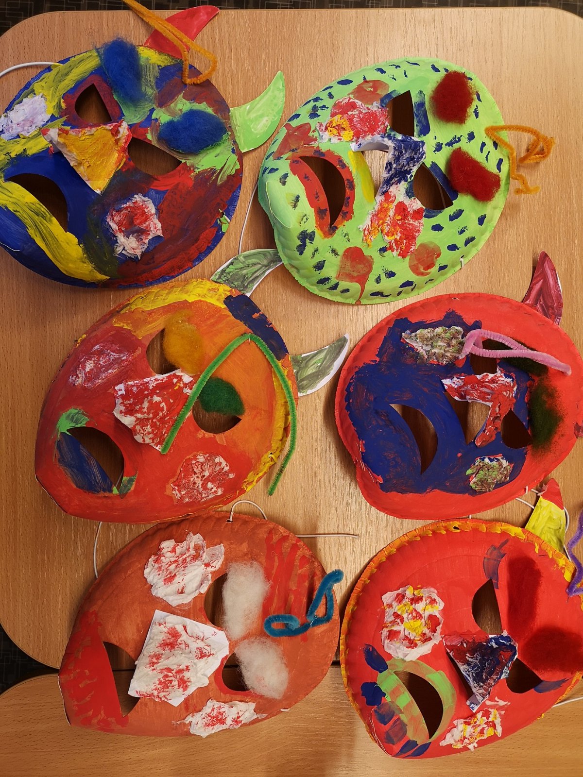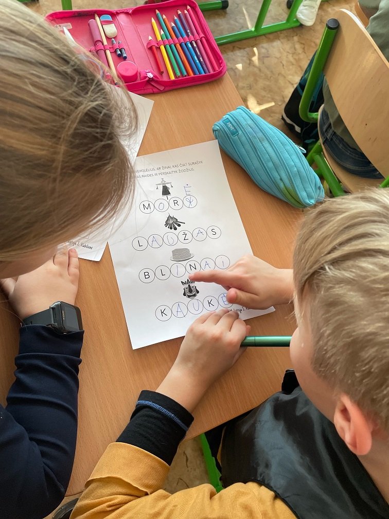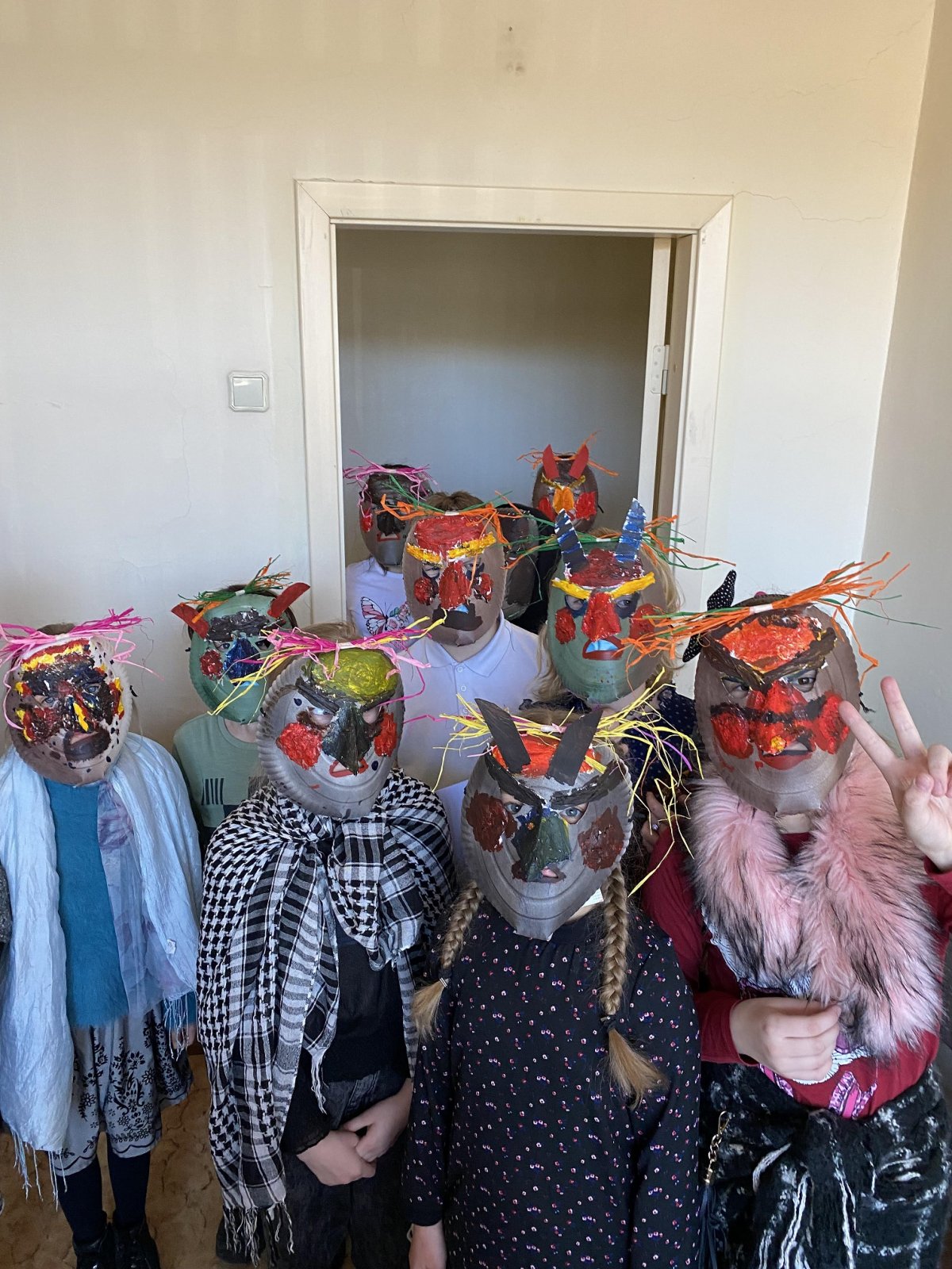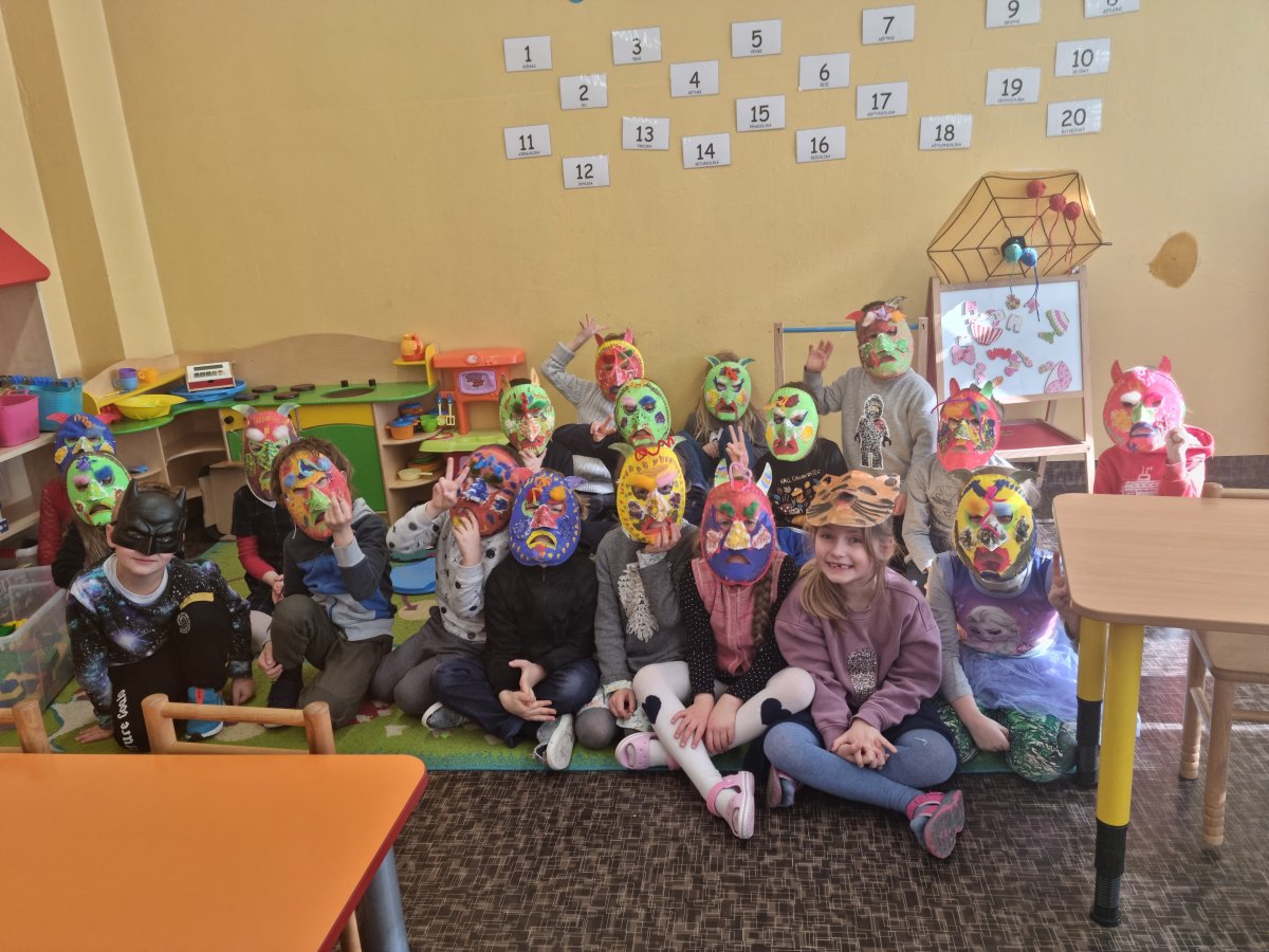 1-4 klasių mokiniai gamino kaukes, vaišinosi blynais.