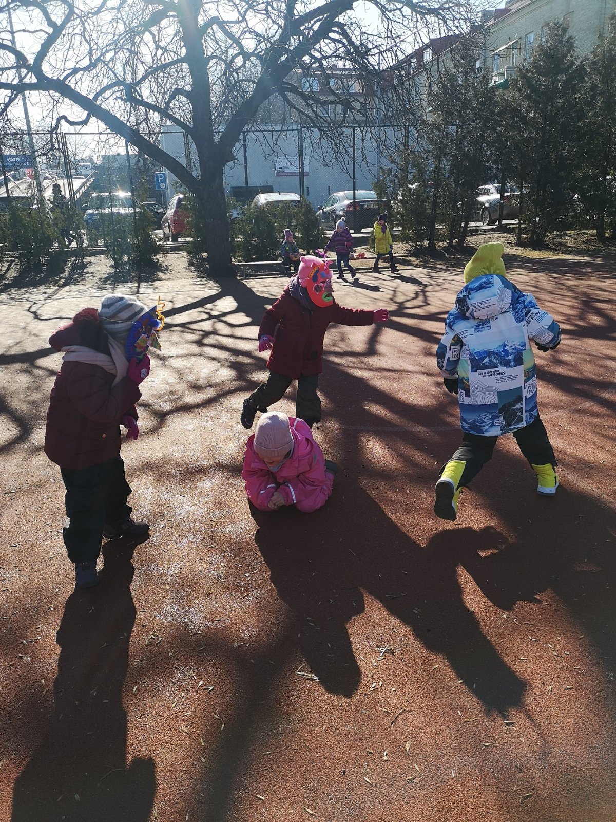 Lauke šokome išmoktus, pakartotus ratelius ir žaidimus ir trepsėjom, vijom žiemą.