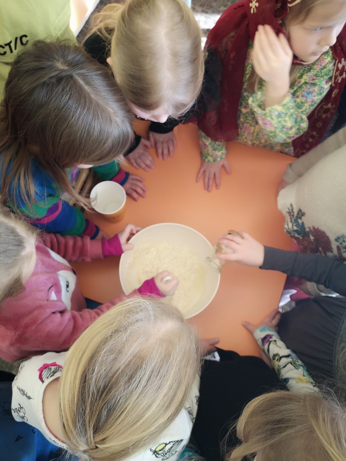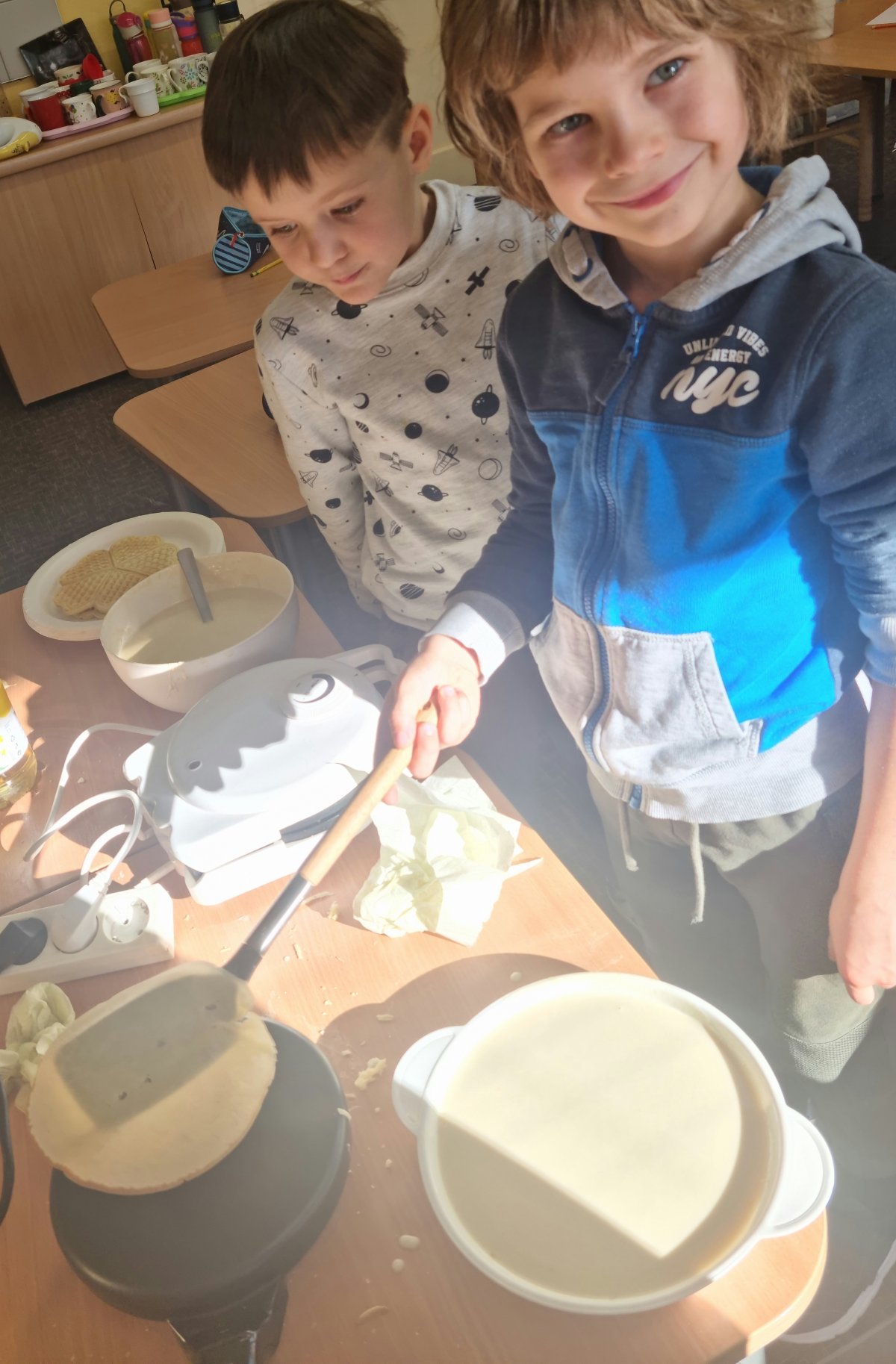Nors šiais metais šventė kuklesnė, visgi papročių nepamirštame. Rytas prasidėjo Užgavėnių papročių pakartojimu ir ratelių, žaidimų mokymusi. Vėliau gaminome Mores – žiemos simbolį. Ją, prižiūrimi tėvelių, vaikai galės sudeginti patys, taip paleisdami blogas mintis, nuoskaudas. Ir kaip gi Užgavėnės be blynų. Priešmokyklinukai patys ruošė maišė tešlą, kepė blynus ir vaišino vieni kitus.