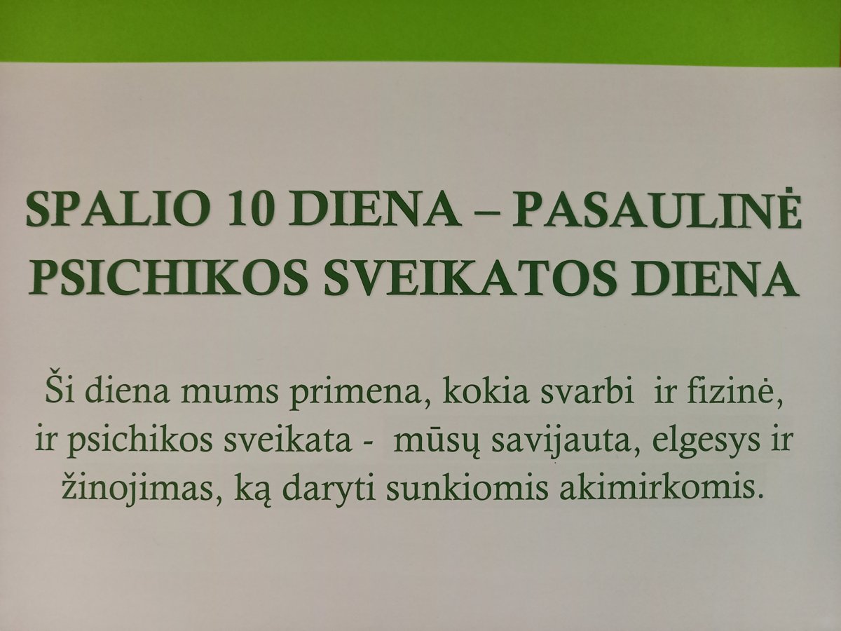 Kvietėme spalio 10-ąją dėvėti žalios spalvos drabužį ar akcentą bei palaikyti Jaunimo linijos organizuojamą akciją ,,Žalia šviesa gyvenimui" ir kartu atkreipti dėmesį į jaunų žmonių psichinę bei emocinę sveikatą.