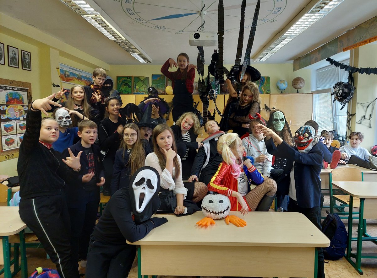 Šią dieną mokiniai ir mokytojai pasipuošė juodos ar oranžinės spalvos drabužiais su Helovino akcentais. PUG, 1-10 klaių mokiniai dalyvavo originaliausiai dekoruoto moliūgo parodoje – konkurse. Konkursą laimėjo 8b ir 3b klasės mokiniai.