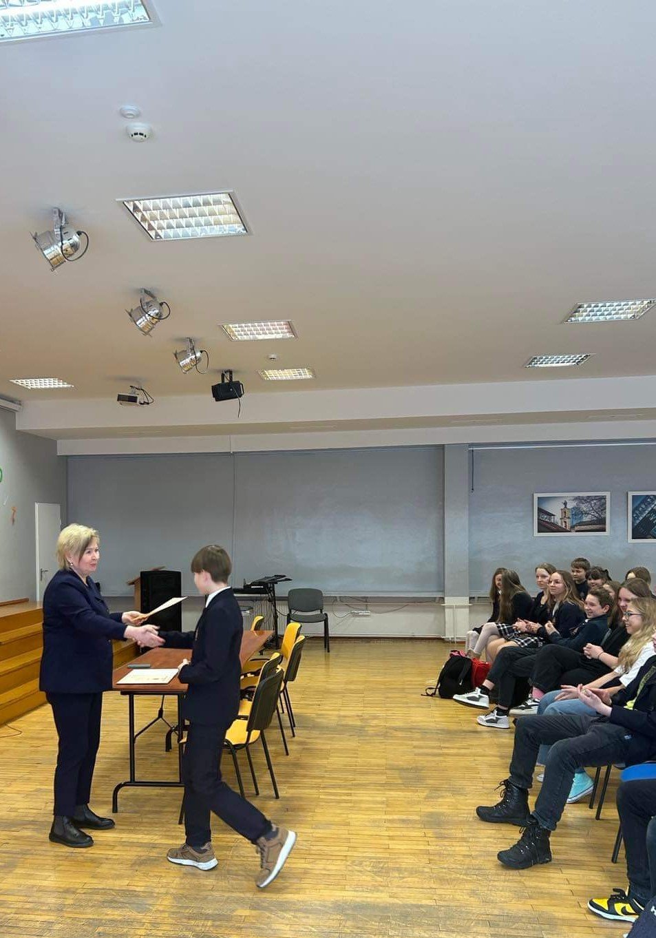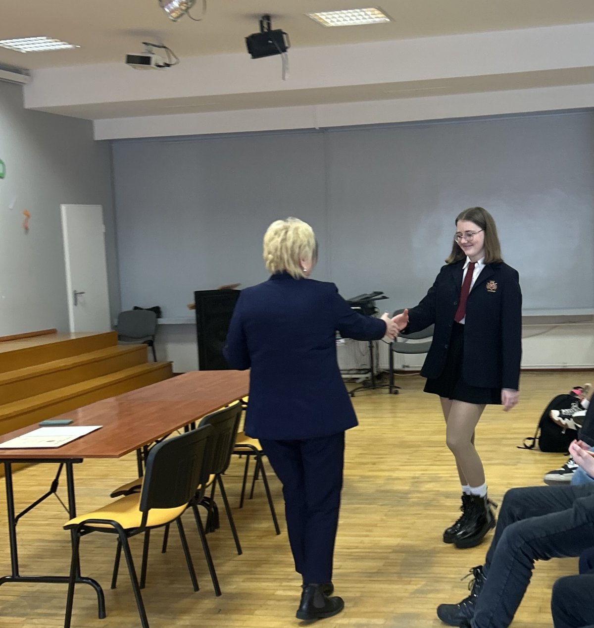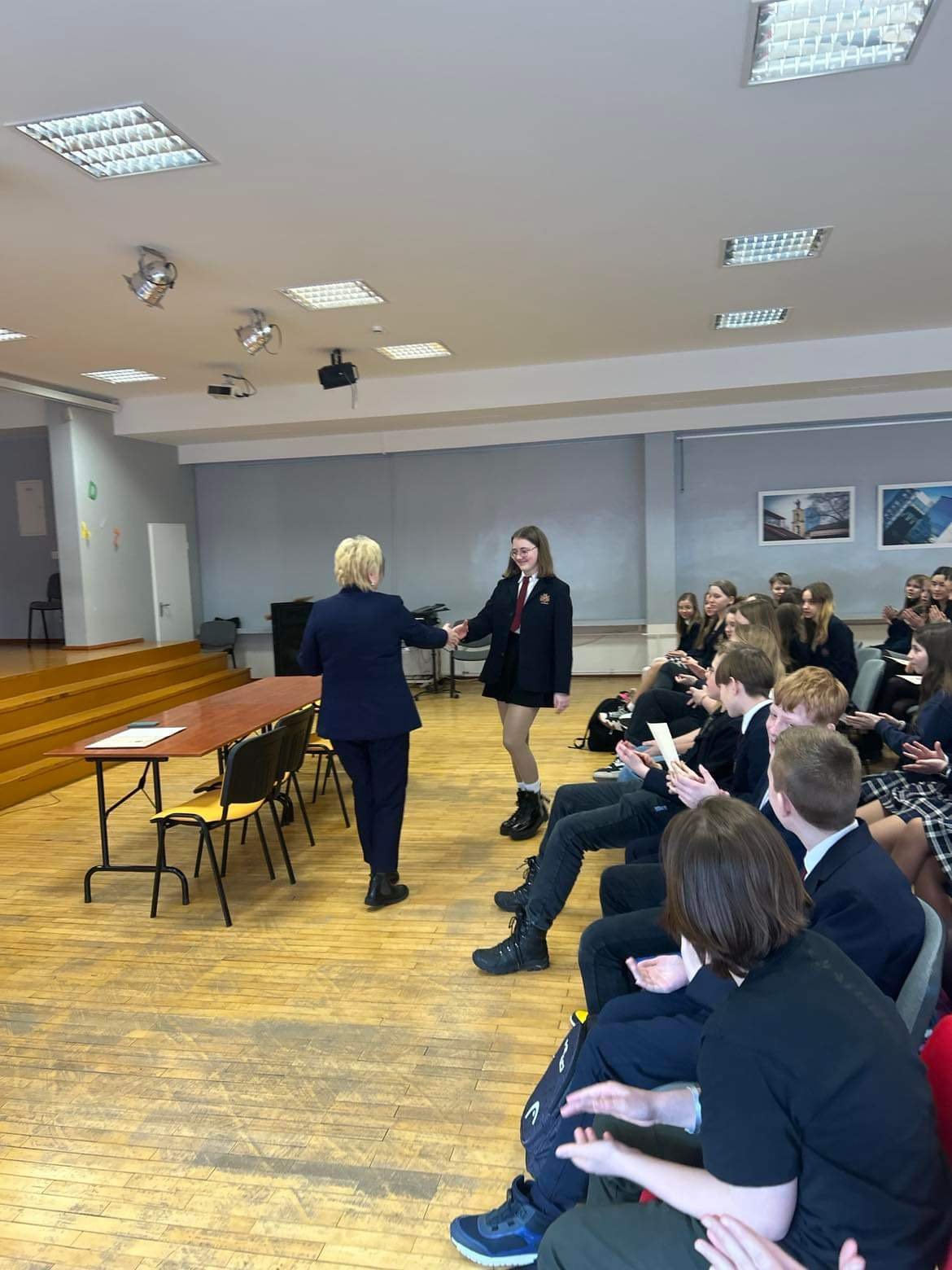 Šiandien Vilniaus karaliaus Mindaugo mokykloje vyko meninio skaitymo konkursas "Žodi, skambėk!", kuriame dalyvavo 5-8 klasių moksleiviai. Šiuo konkursu ne tik pagerbtas kalbos savitumas bei grožis, bet ir autentiškai, o kartu ir asmeniškai perskaitytas eilėraščio pasaulis. Tokia meninio skaitymo dovana su konkurso svečiais pasidalino 29 dalyviai, iš kurių komisija III-ąją vietą skyrė Pijui Maciežai (6a klasė) ir Jorei Lapinskaitei (8a klasė), II-ąją - Rusnei Mačiulytei (5a klasė) ir Jevlalijai Varvinskajai (8a klasė), o I-ąją - Gustei Kielaitei (8a klasė) ir Augustei Staniulionytei (8a klasė).