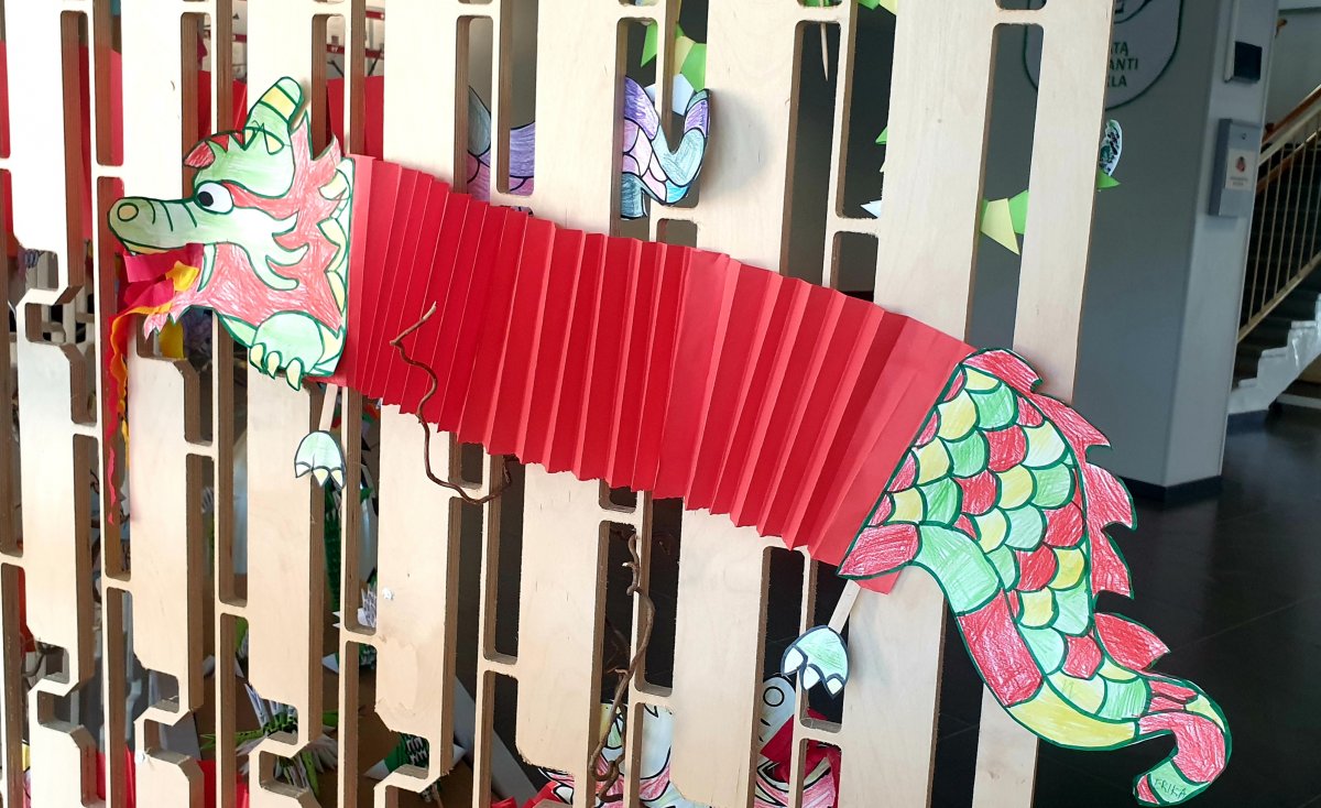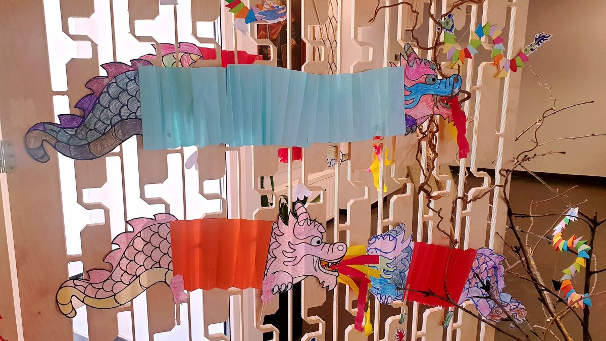 Integruotas dailės ir neformaliojo ugdymo būrelių projektas „Drakonai“. Pažymint Naujuosius žaliojo drakono metus mokyklos erdvėse š. m. vasario 15 - kovo 7 dienomis buvo eksponuojami 1-8 kl. mokinių integruoto dailės ir neformaliojo ugdymo būrelių „Kūrybiniai labirintai“ ir „Rankdarbių mozaika“ projektiniai darbai. Pradinių klasių mokinukų pirštukai lankstė, spalvino bei gamino origami drakonus iš 32 detalių, o dviems šeštos ir aštuntos klasės mokinių sukurtiems drakonams prireikė išlankstyti net 844 detales. Šalia erdvinių drakonų buveinės buvo galima pasigrožėti pieštais įvairiaspalviais drakonais.