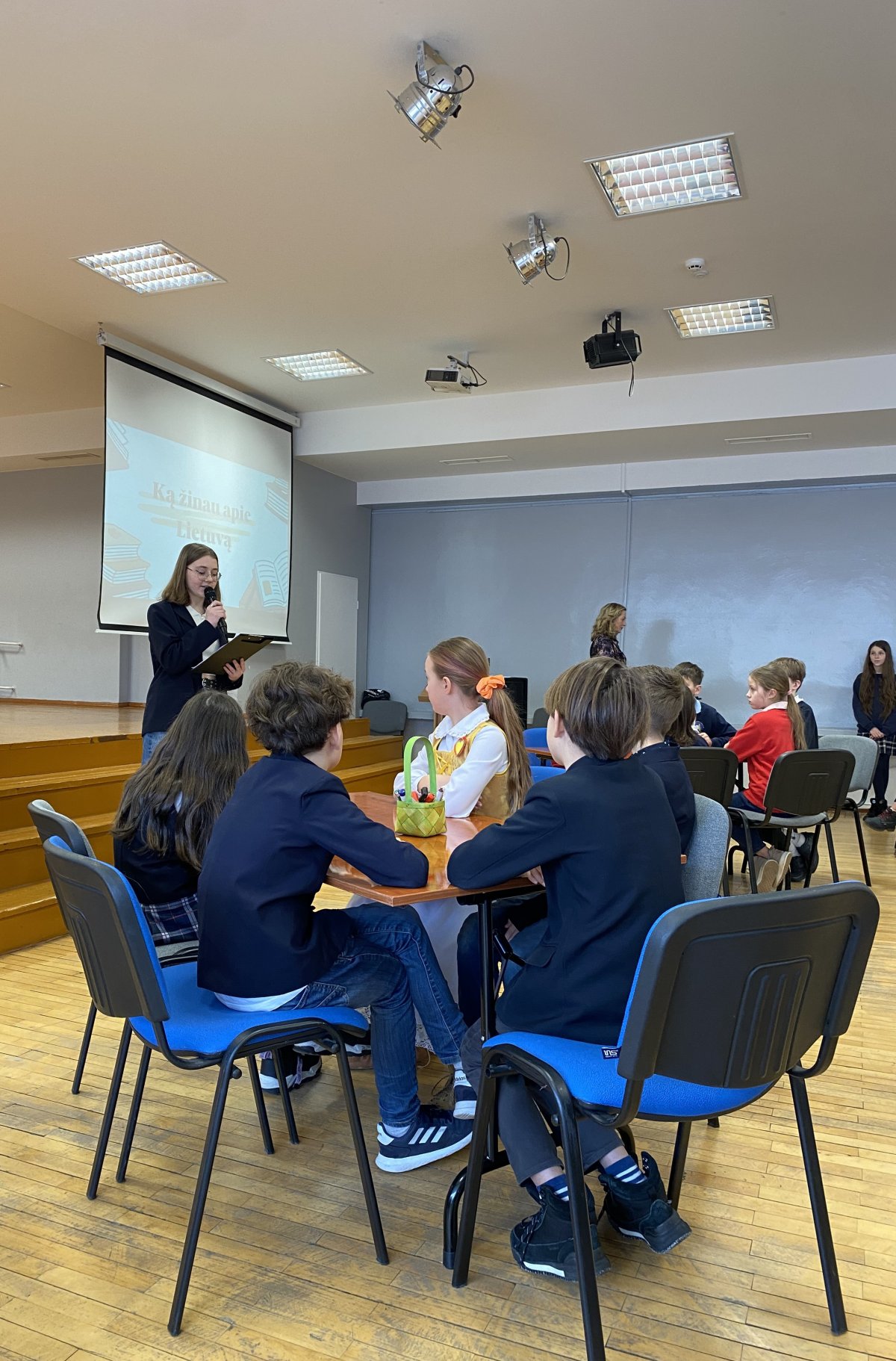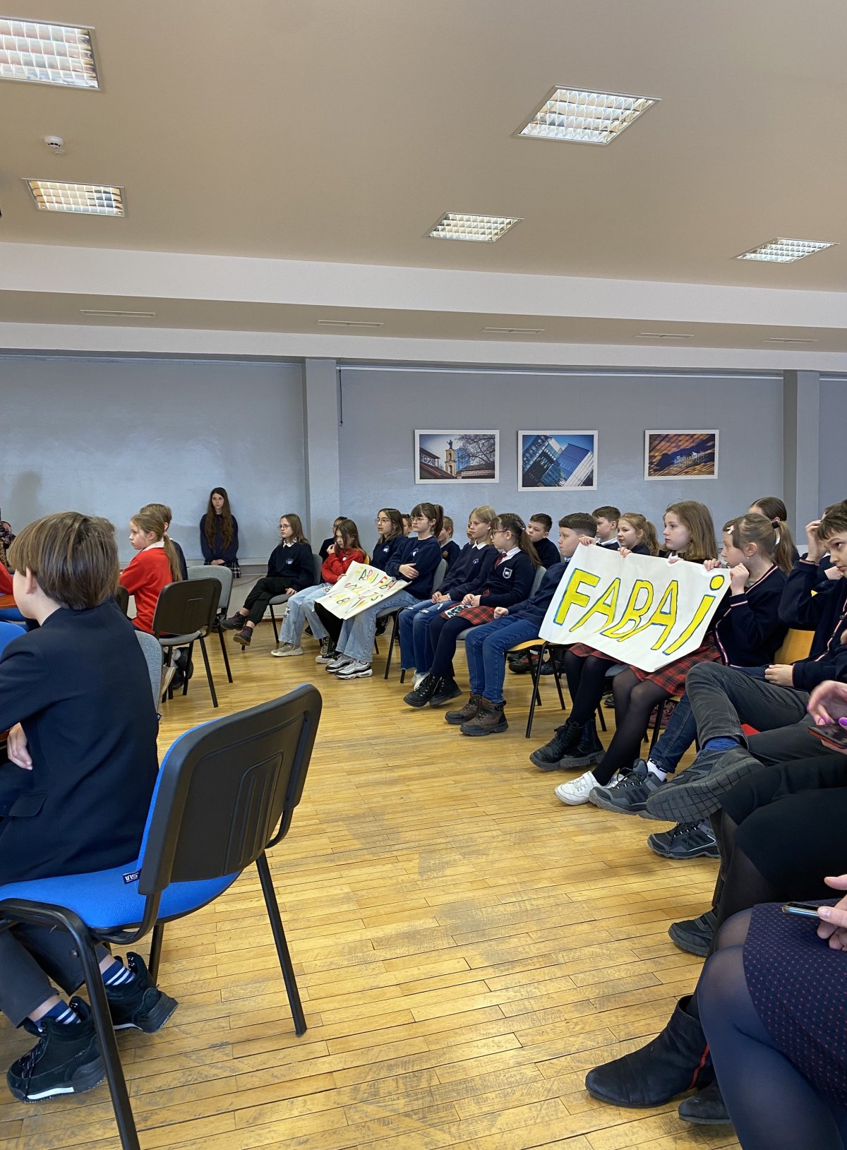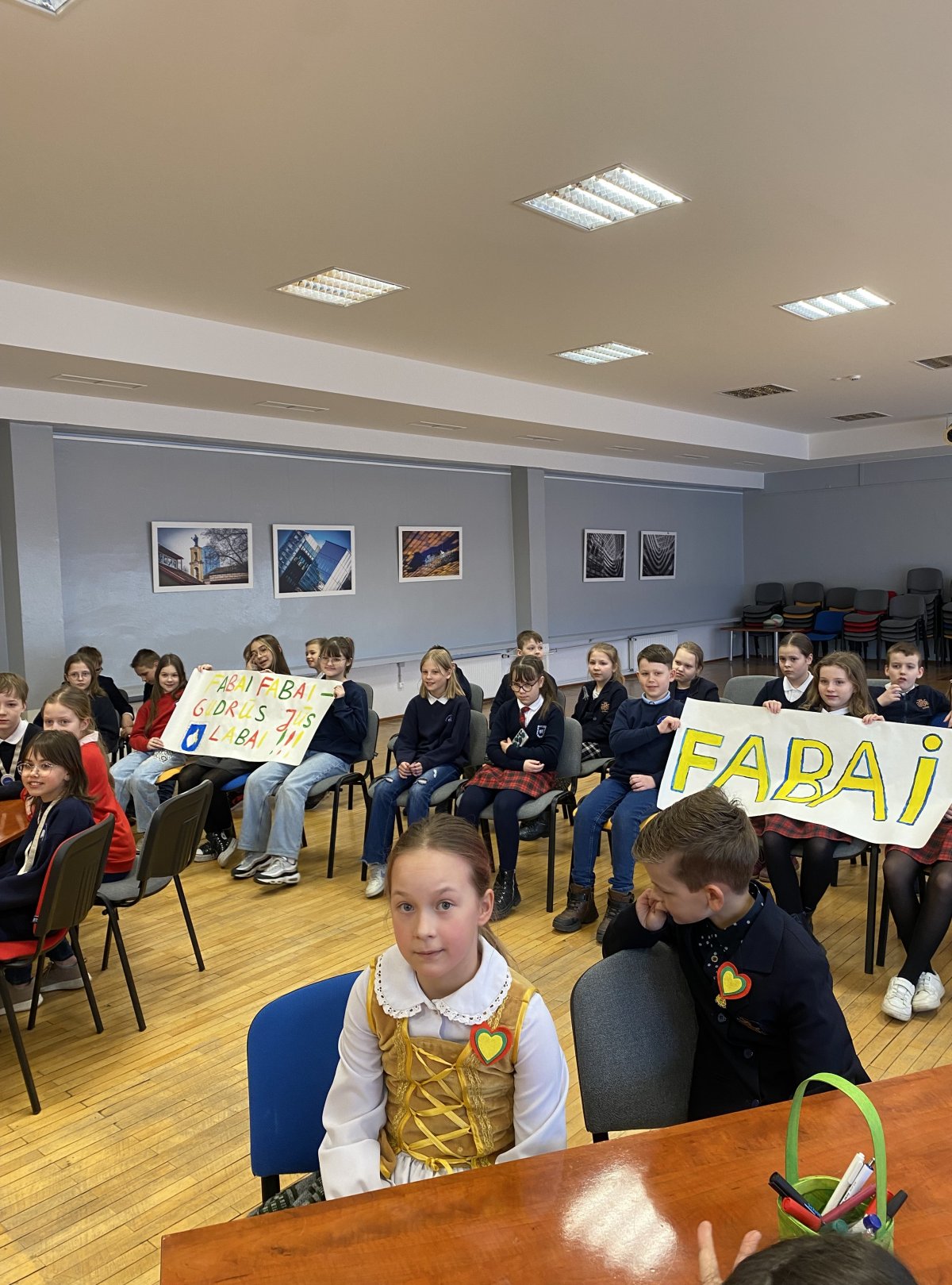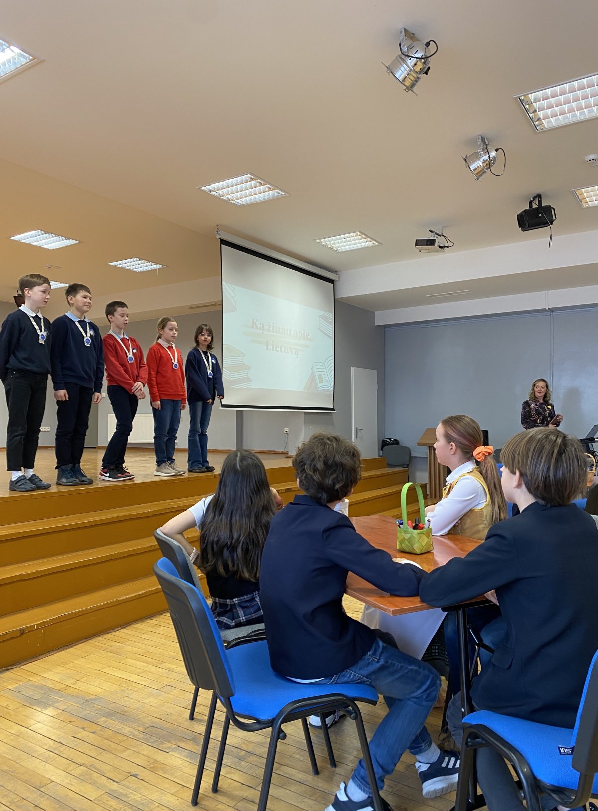 Šiandien mūsų mokykloje svečiavosi Vilniaus Fabijoniškių gimnazijos ketvirtokų klasė. Aktų salėje buvo organizuota tarpmokyklinė viktorina "Ką žinau apie Lietuvą". Mūsų mokyklos ir svečių komandos smagiai įveikė visas užduotis. Jas pateikti talkino mokytojai Lina Konstantinavičienė ir Simonas Giedrys. Renginį vedė aštuntokė 8 kl. mokinė Gustė. Viktoriną dainomis papuošė mūsų mokinė 5 kl. mokinė Meida ir jungtinis 4a kl.choras. Jais rūpinosi mokytoja Rugilė Šipelienė. Mokyklos direktorė R.Pilauskaitė visiems dalyviams įteikė padėkas.Visi dalyviai papildė turimas žinias apie gimtąjį kraštą, pasidžiaugė gražia draugyste, kurią tikimės tęsti.