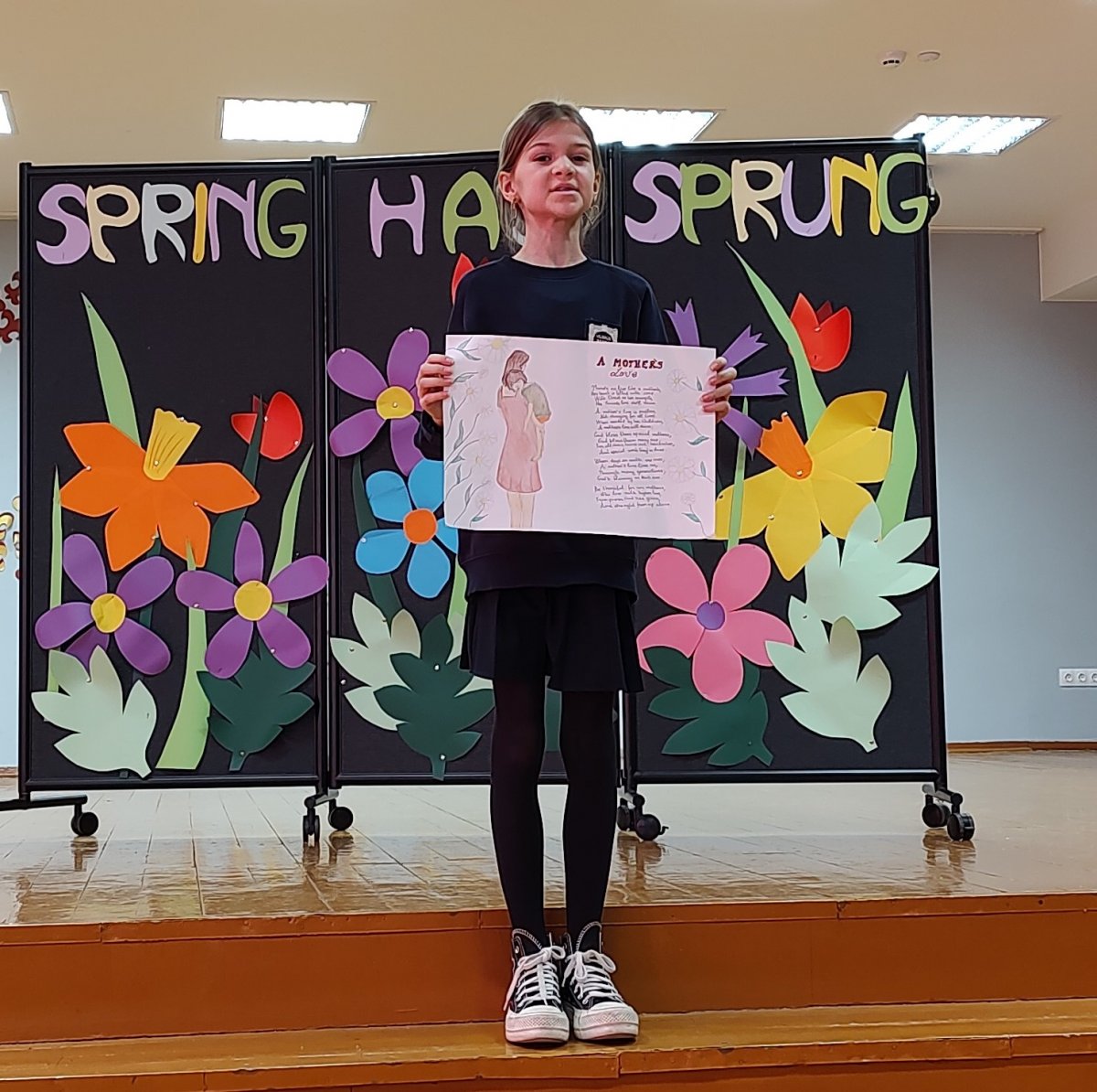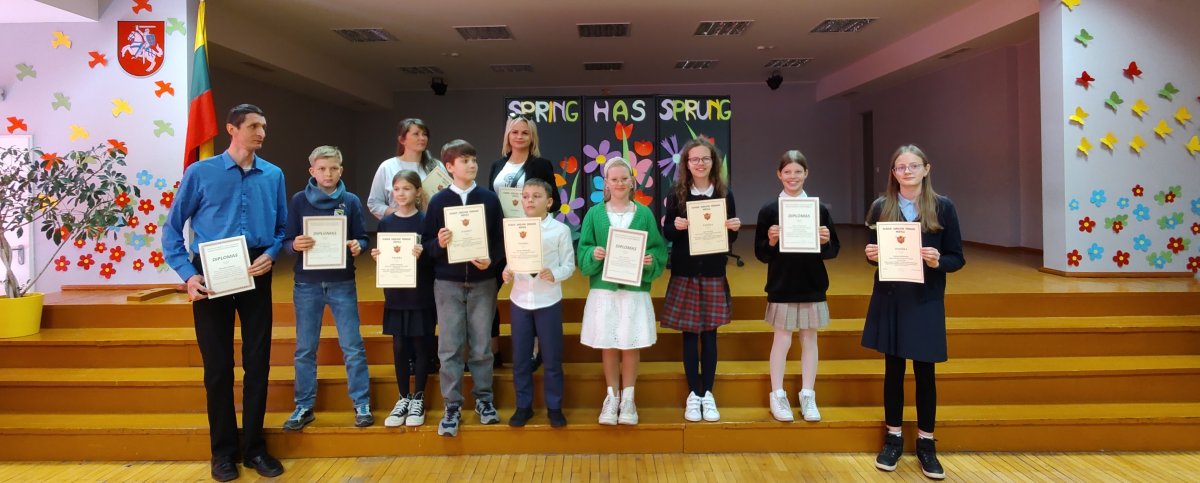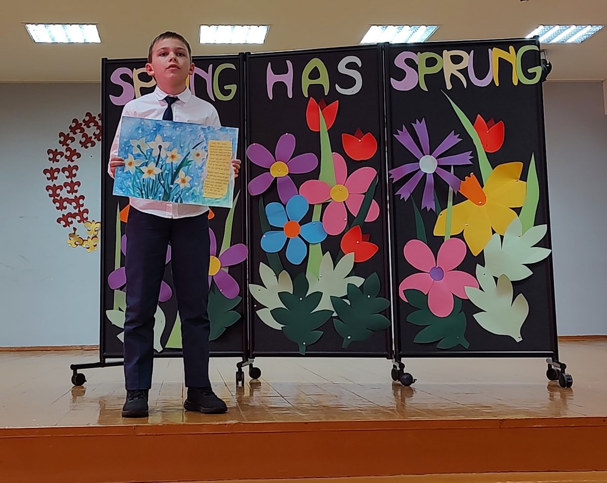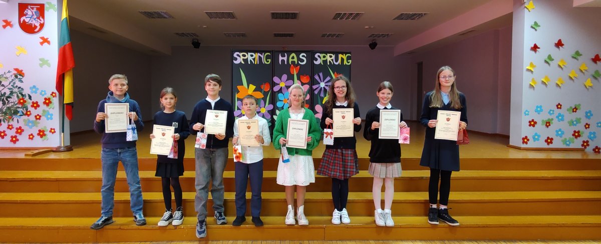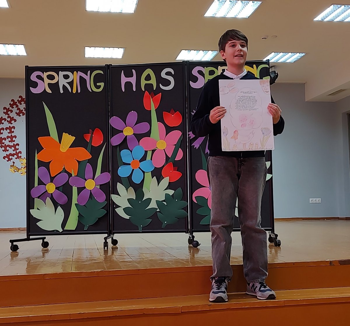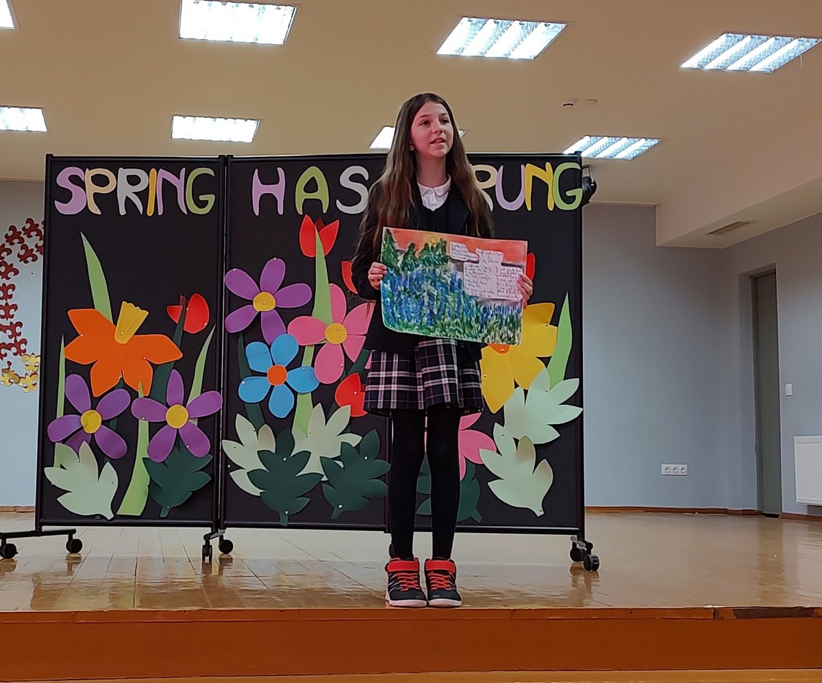 Gegužės 8 d. mūsų mokykloje įvyko Vilniaus miesto mokyklų 5-ų klasių mokinių integruotas anglų kalbos meninio skaitymo ir iliustracijų konkursas „SPRING HAS SPRUNG”. Devynių Vilniaus mokyklų penktokai deklamavo eiles apie pavasarį ir pristatė savo sukurtas tų eilėraščių iliustracijas. Išrinkti geriausius buvo tikrai nelengva, nes visi dalyviai savo pasirodymais paskleidė daug žodžių šilumos ir pavasariškos eilės liejosi tarsi muzika. Visgi komisija išrinko nugalėtojus: