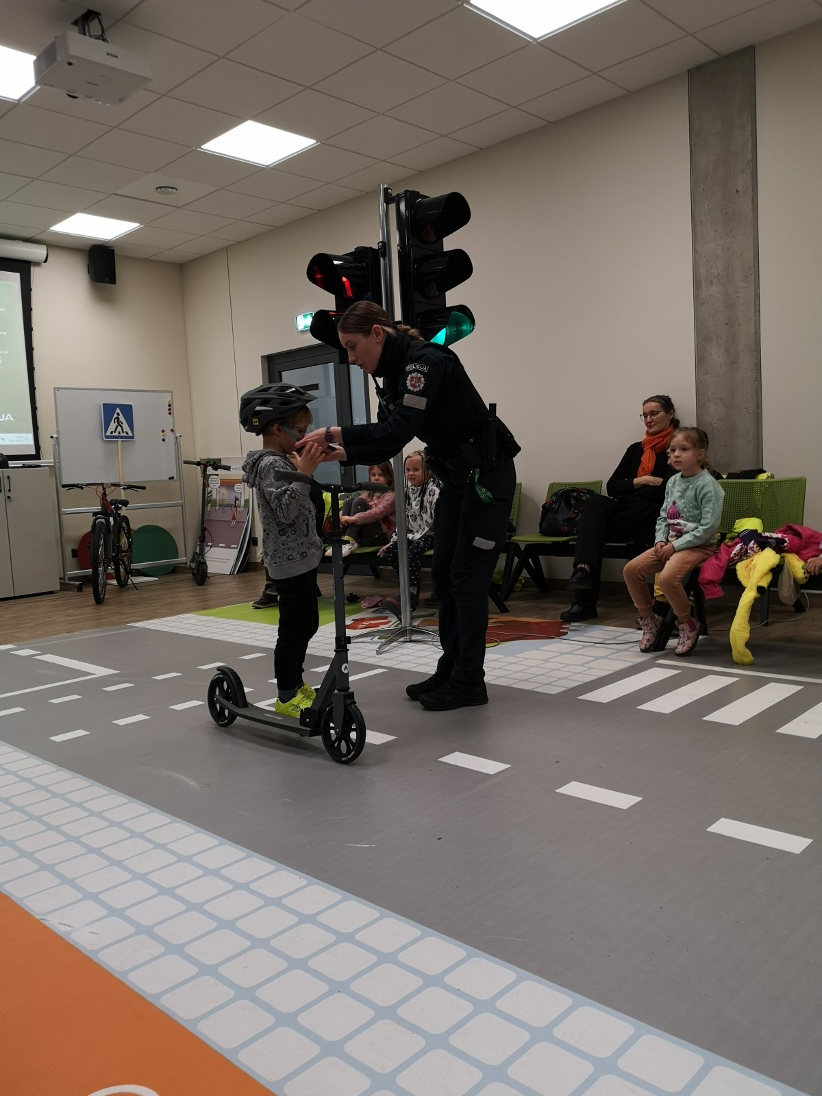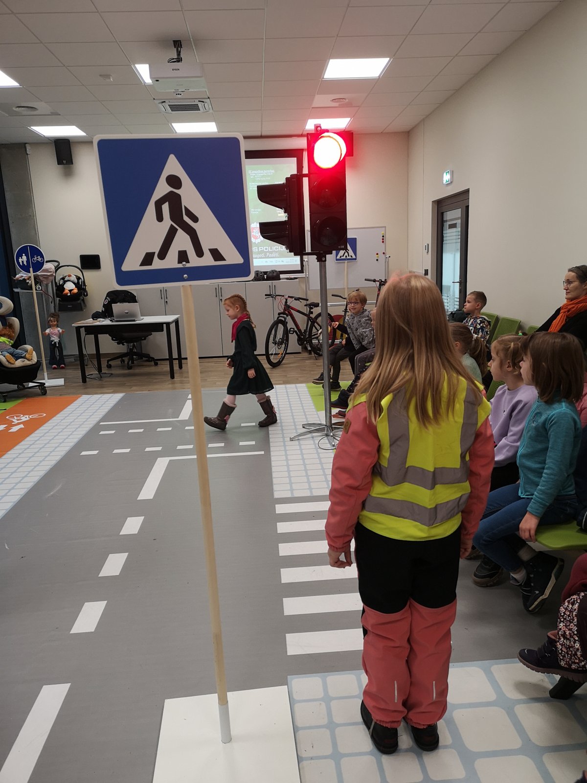 Vaikai drauge su pareigūne bei mokytojomis troleibusu nuvyko į Saugaus eismo klasę, kurioje mokėsi ir gilino teorines bei praktines saugaus elgesio kelyje žinias. Po mokymų visi grįžo atgal į mokyklą viešuoju transportu, praktiškai pritaikė savo žinias apie saugų elgesį gatvėje ir viešajame transporte.