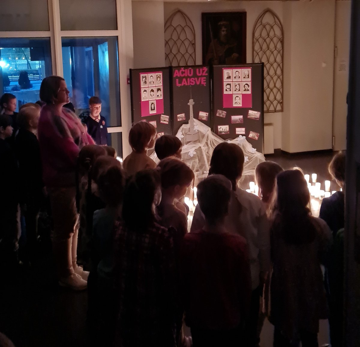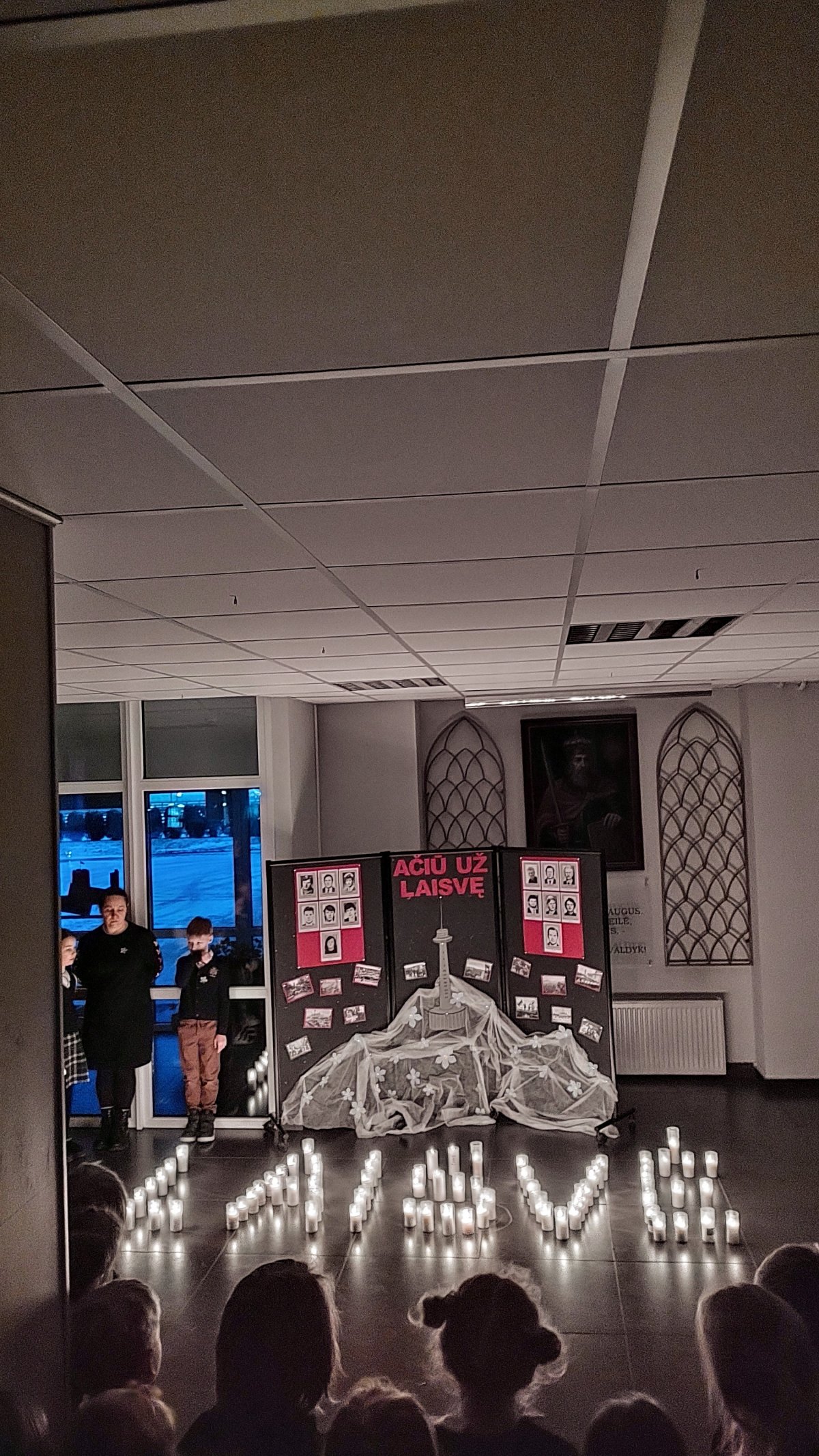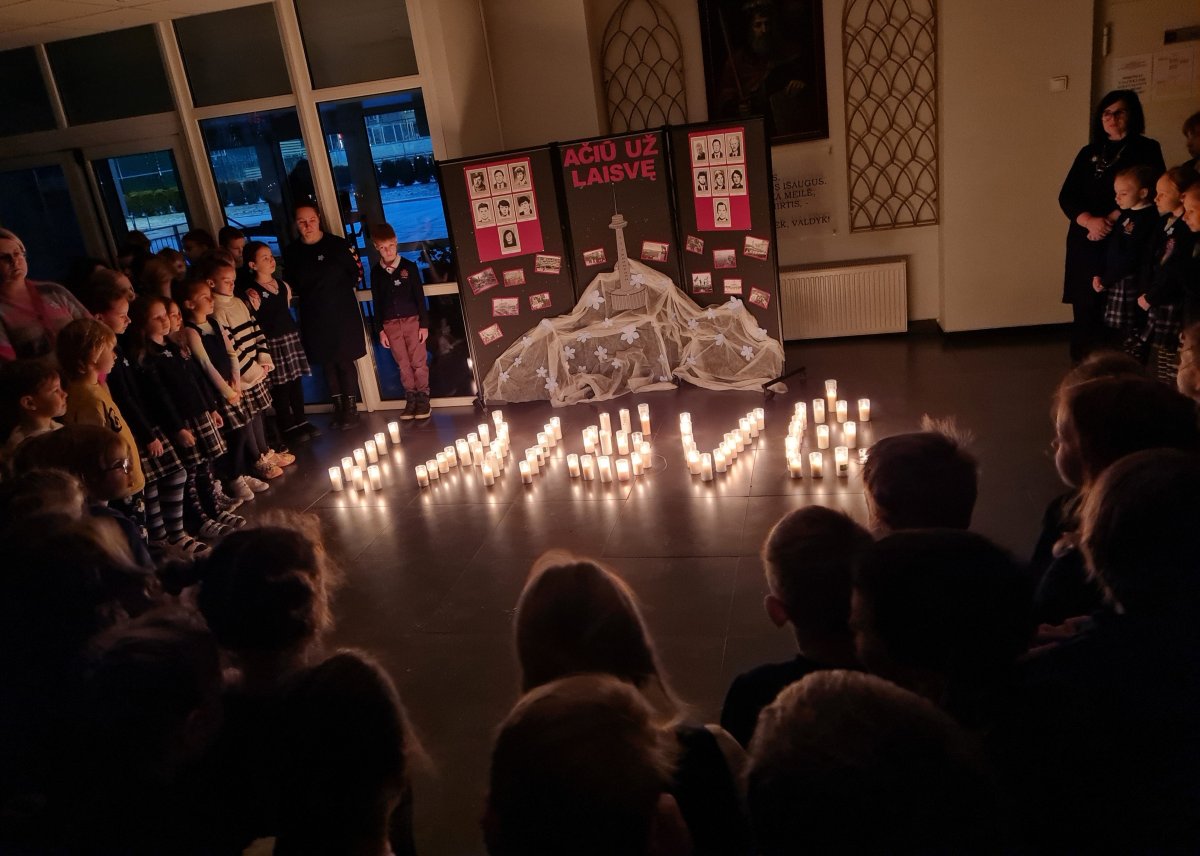 Šiandien mokykloje paminėjome Laisvės gynėjų dieną. Uždegėme žvakutes, skirtas pagerbti tuos, kurie kovojo už Lietuvą, sugiedojome Tautinį himną, išklausėme specialų pranešimą per mokyklos radiją apie Sausio 13-osios įvykius ir kartu padainavome dainą „Laisvė“.