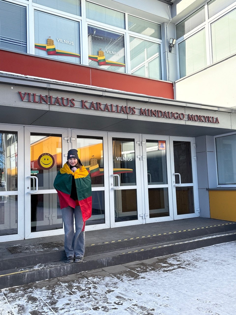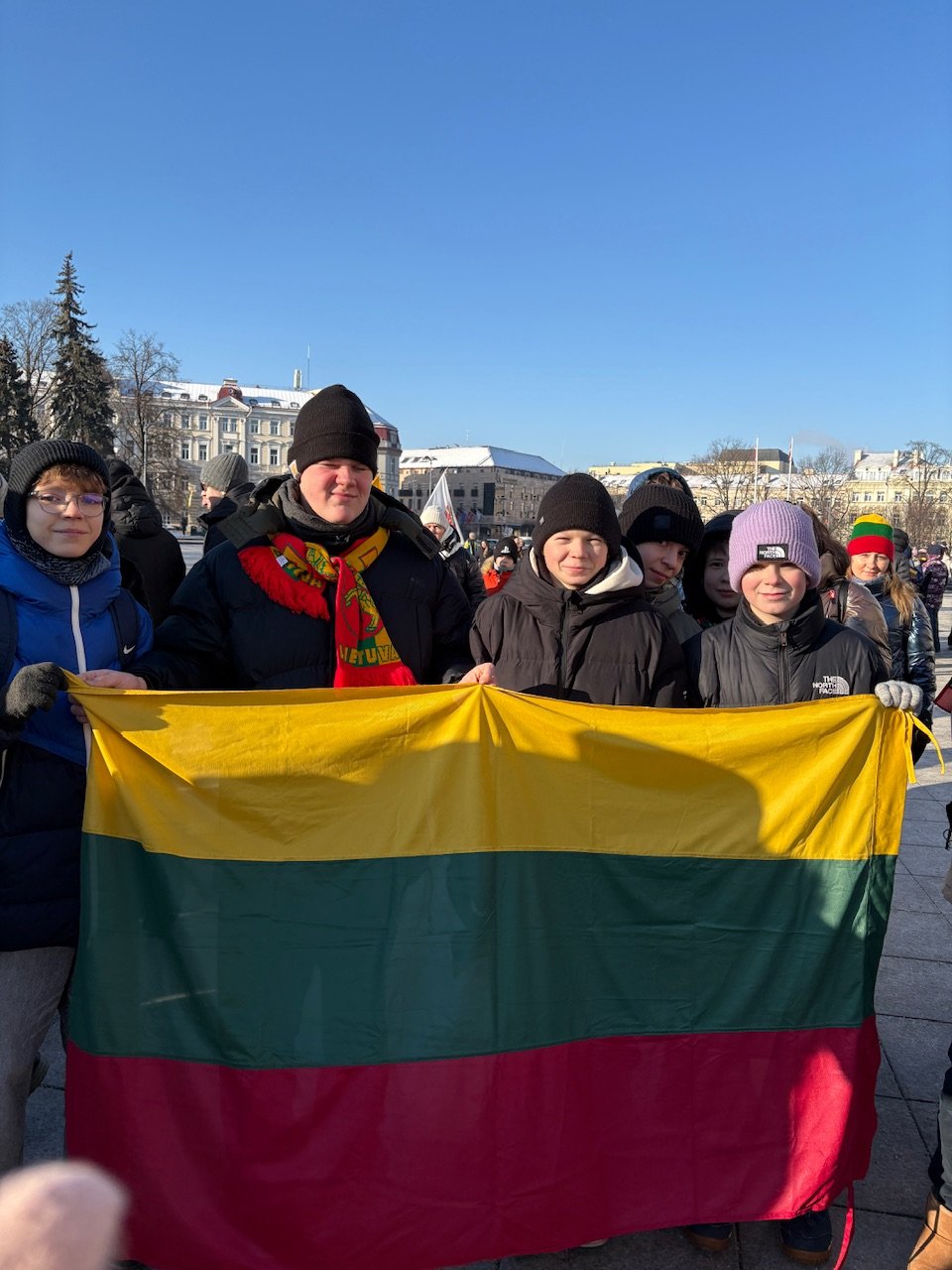 Mūsų mokyklos mokytojai, mokiniai ir jų tėveliai sekmadienį, vasario 16 d. Lietuvos valstybės atkūrimo dieną sostinėje paminėjo simboline eisena "Lietuvos valstybės keliu".